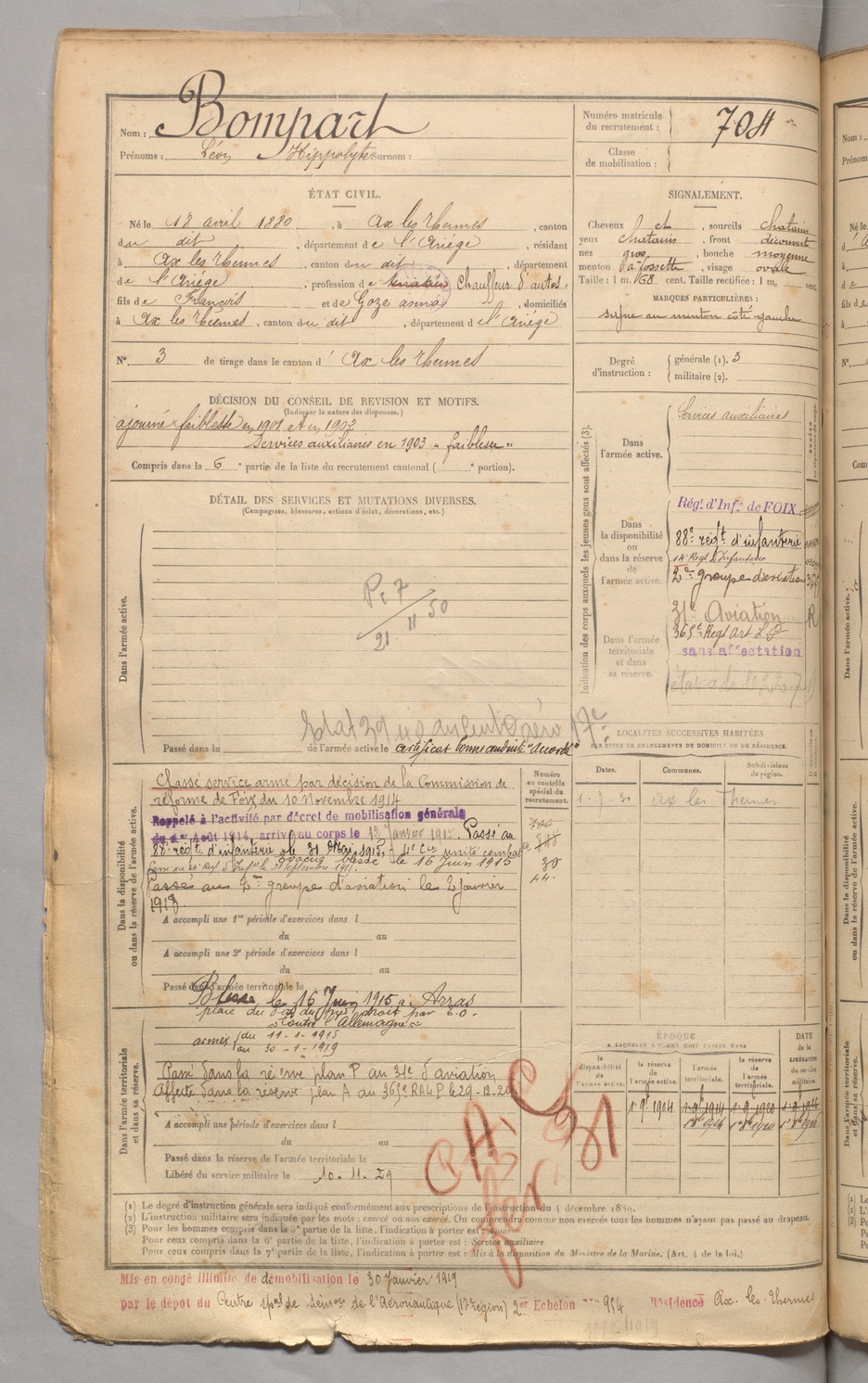 | Bompart | Léon Hippolyte | FOIX | 129 W 3 | 1900 | Ax-les-Thermes | Ax-les-Thermes | 704 |
