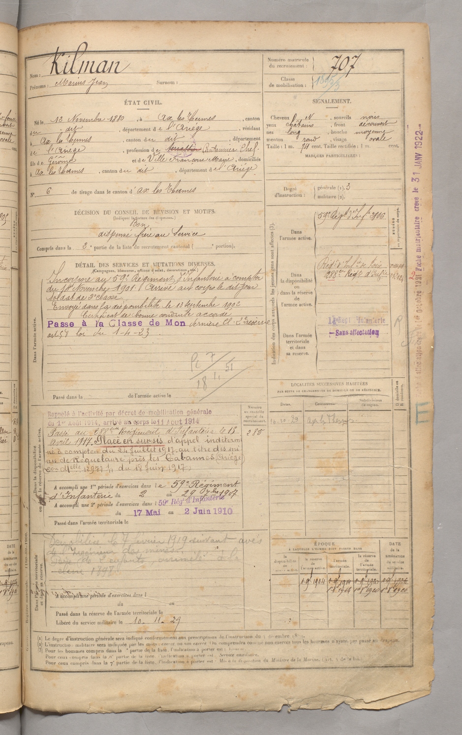 | Kilman | Marius Jean | FOIX | 129 W 3 | 1900 | Ax-les-Thermes | Ax-les-Thermes | 707 |