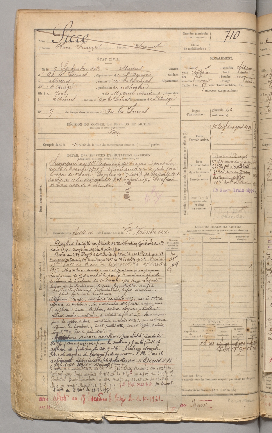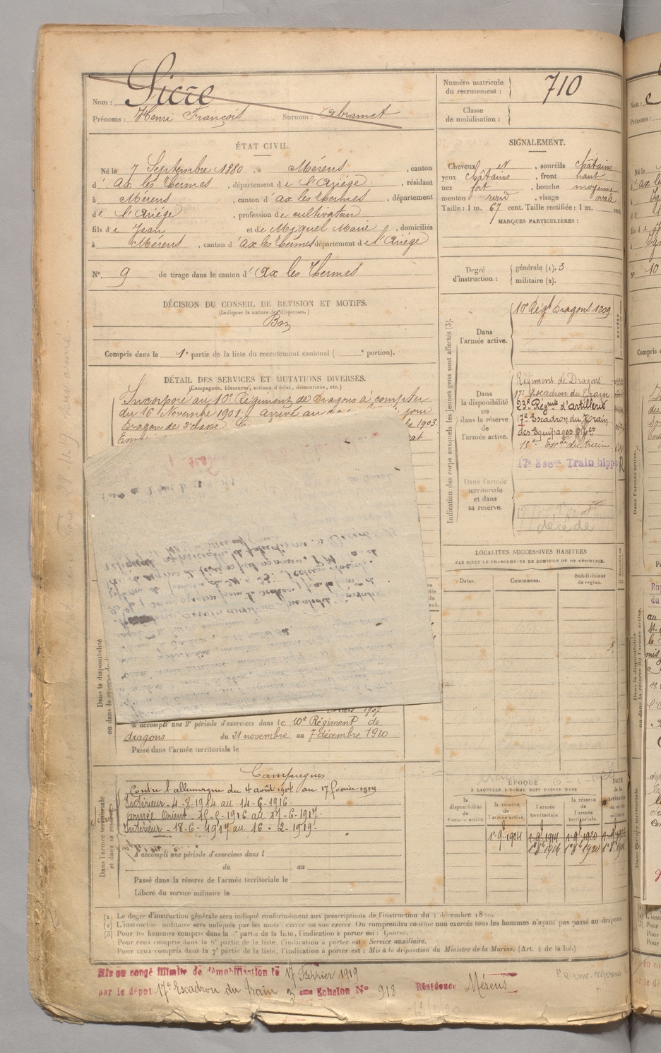 | Sicre | Henri François dit Abramet | FOIX | 129 W 3 | 1900 | Mérens-les-Vals | Mérens-les-Vals | 710 |
