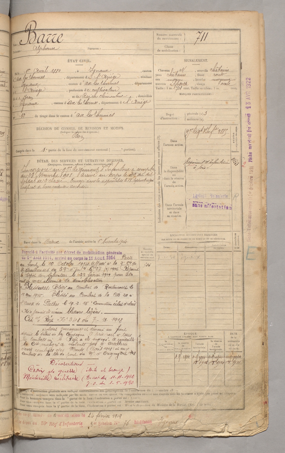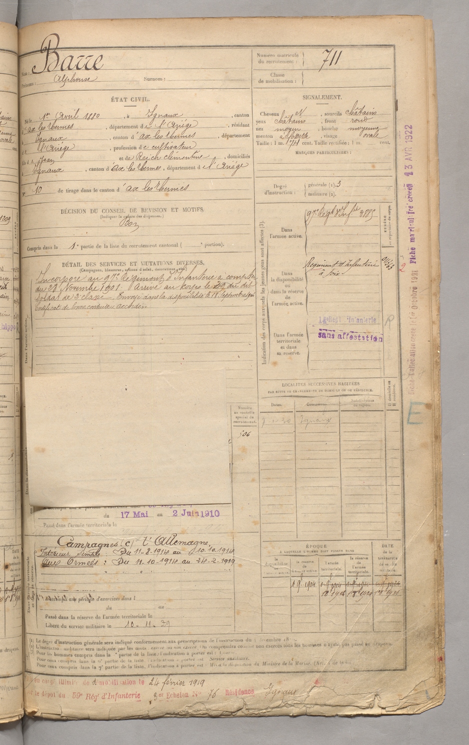 | Barre | Alphonse | FOIX | 129 W 3 | 1900 | Ignaux | Ignaux | 711 |