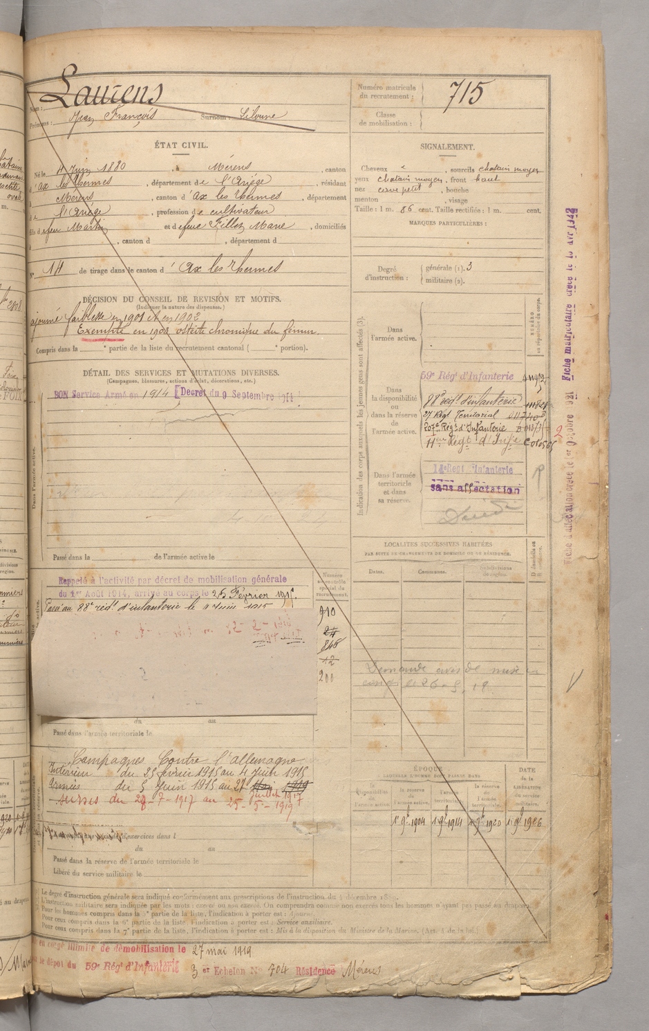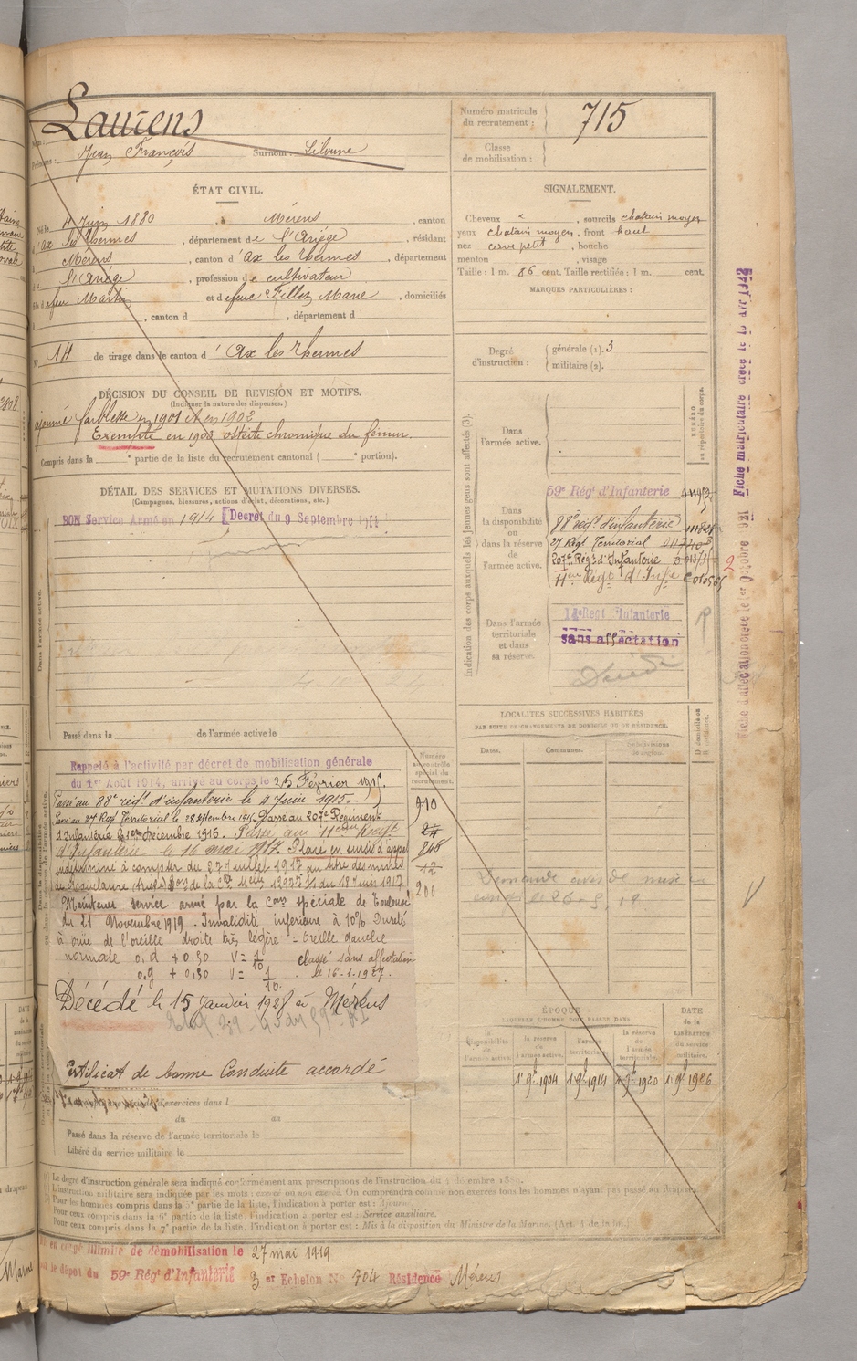 | Laurens | Jean François dit Liloune | FOIX | 129 W 3 | 1900 | Mérens-les-Vals | Mérens-les-Vals | 715 |