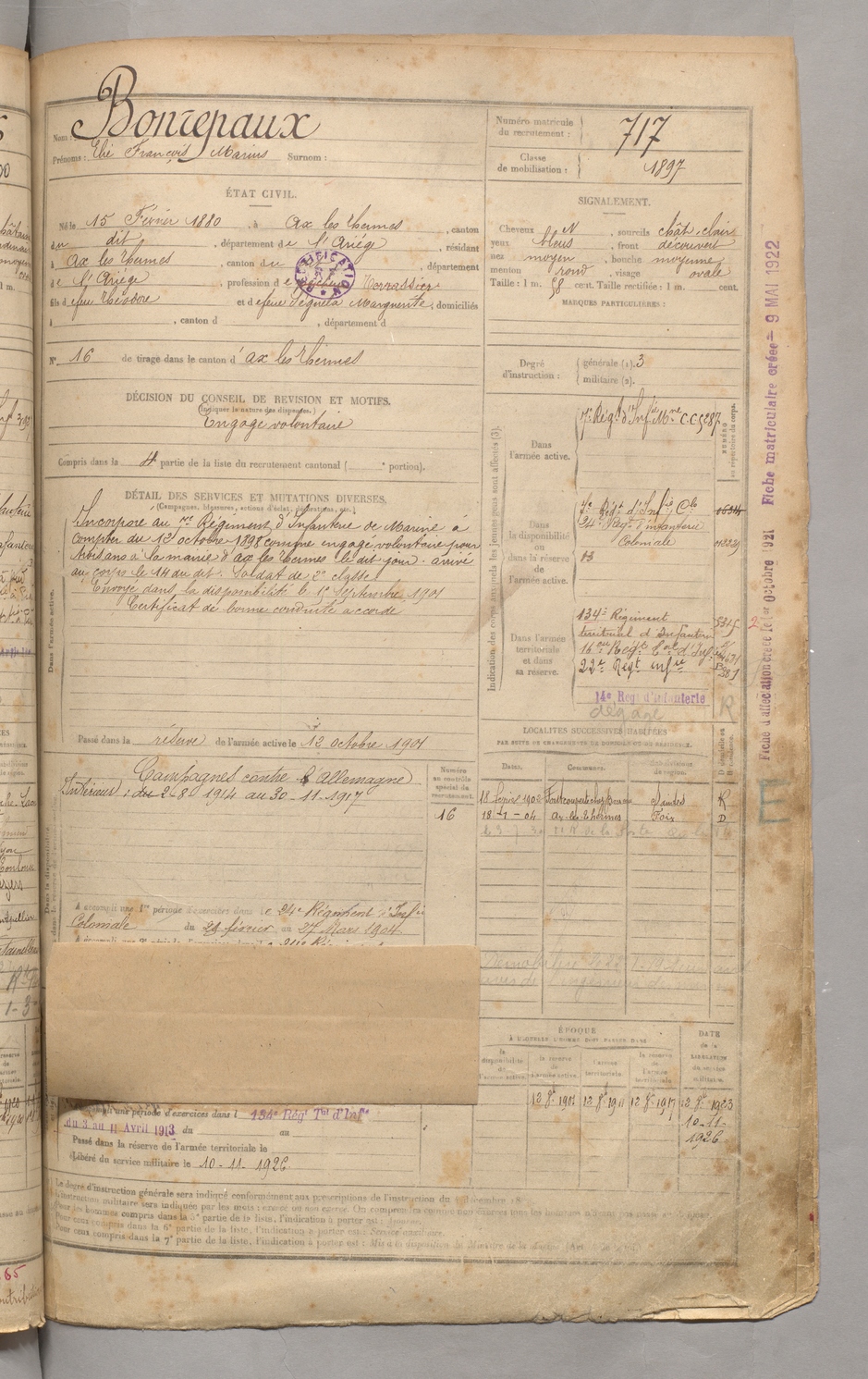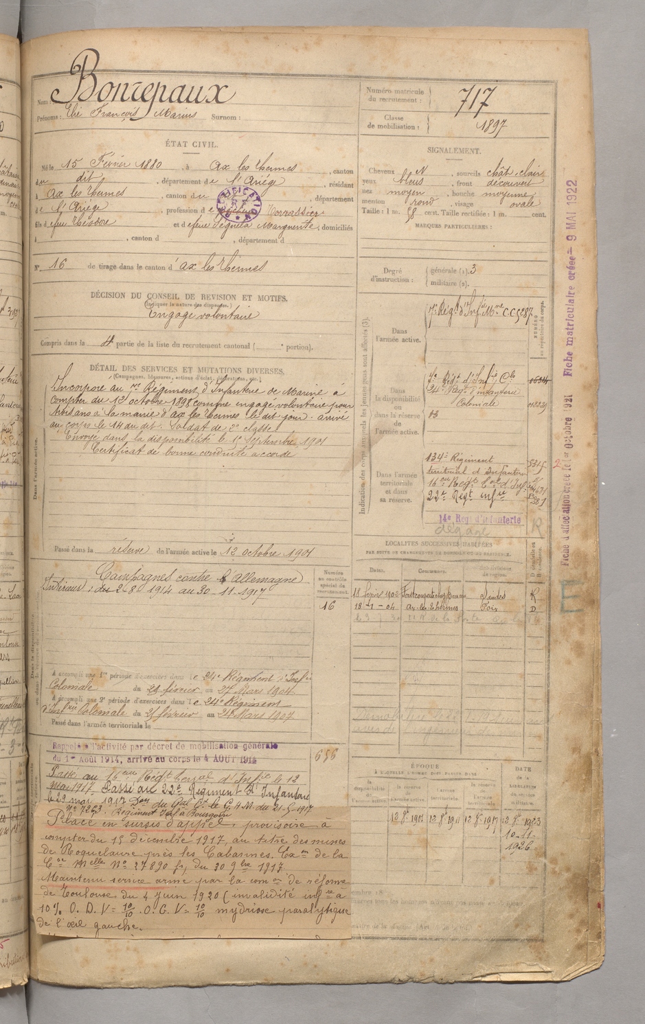 | Bonrepaux | Elie François Marius | FOIX | 129 W 3 | 1900 | Ax-les-Thermes | Ax-les-Thermes | 717 |