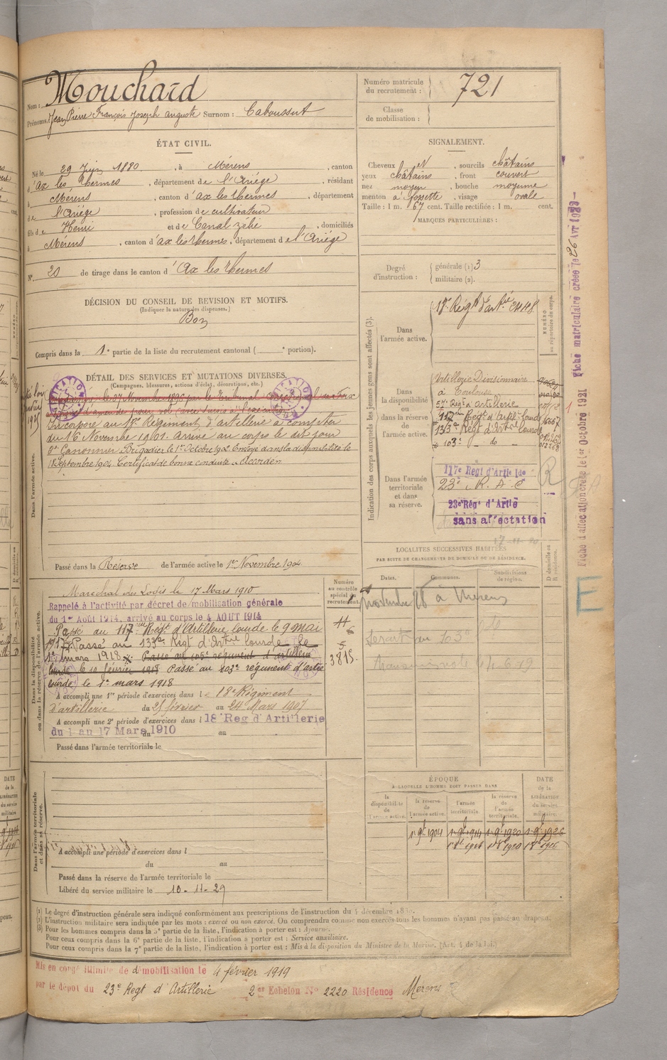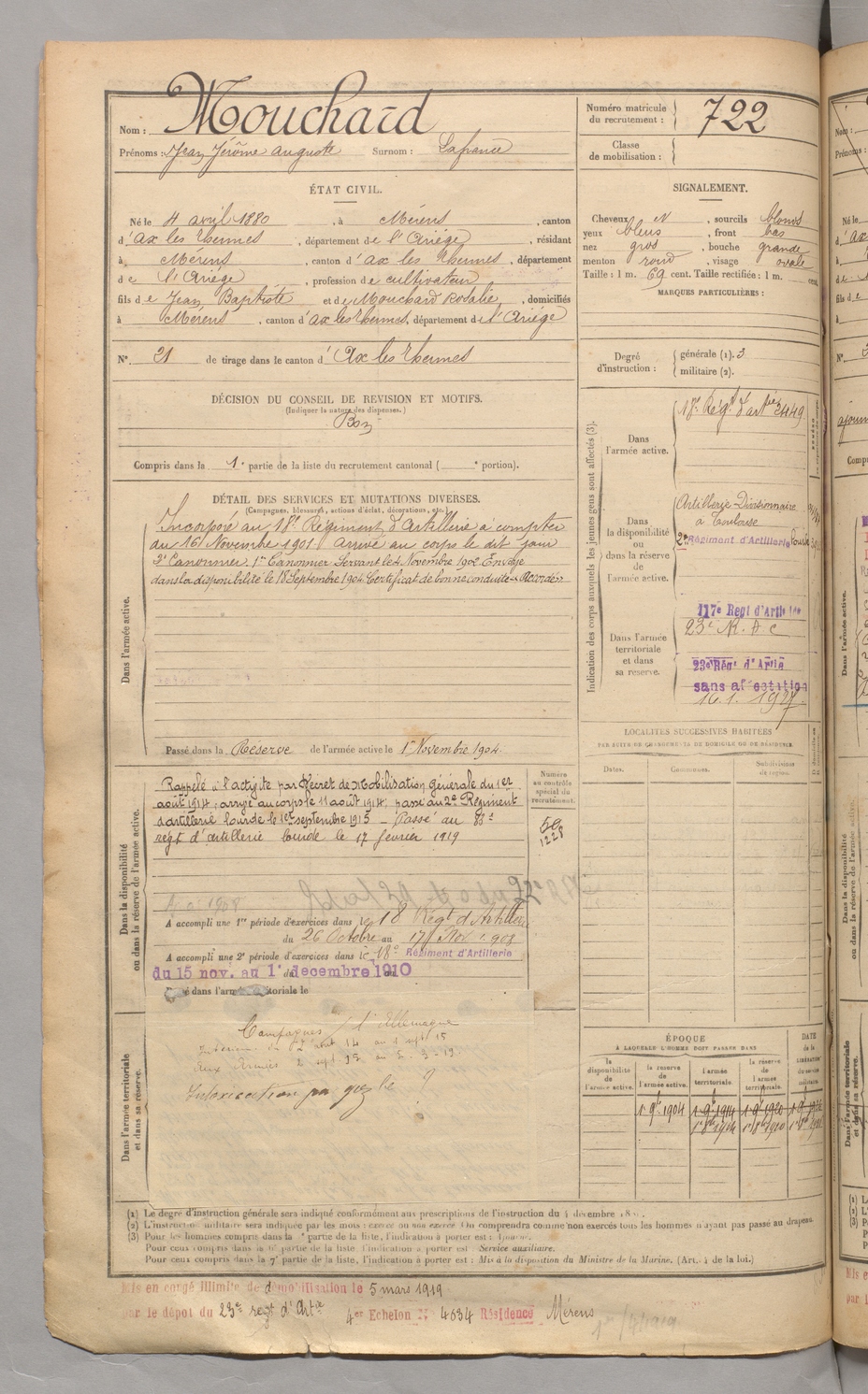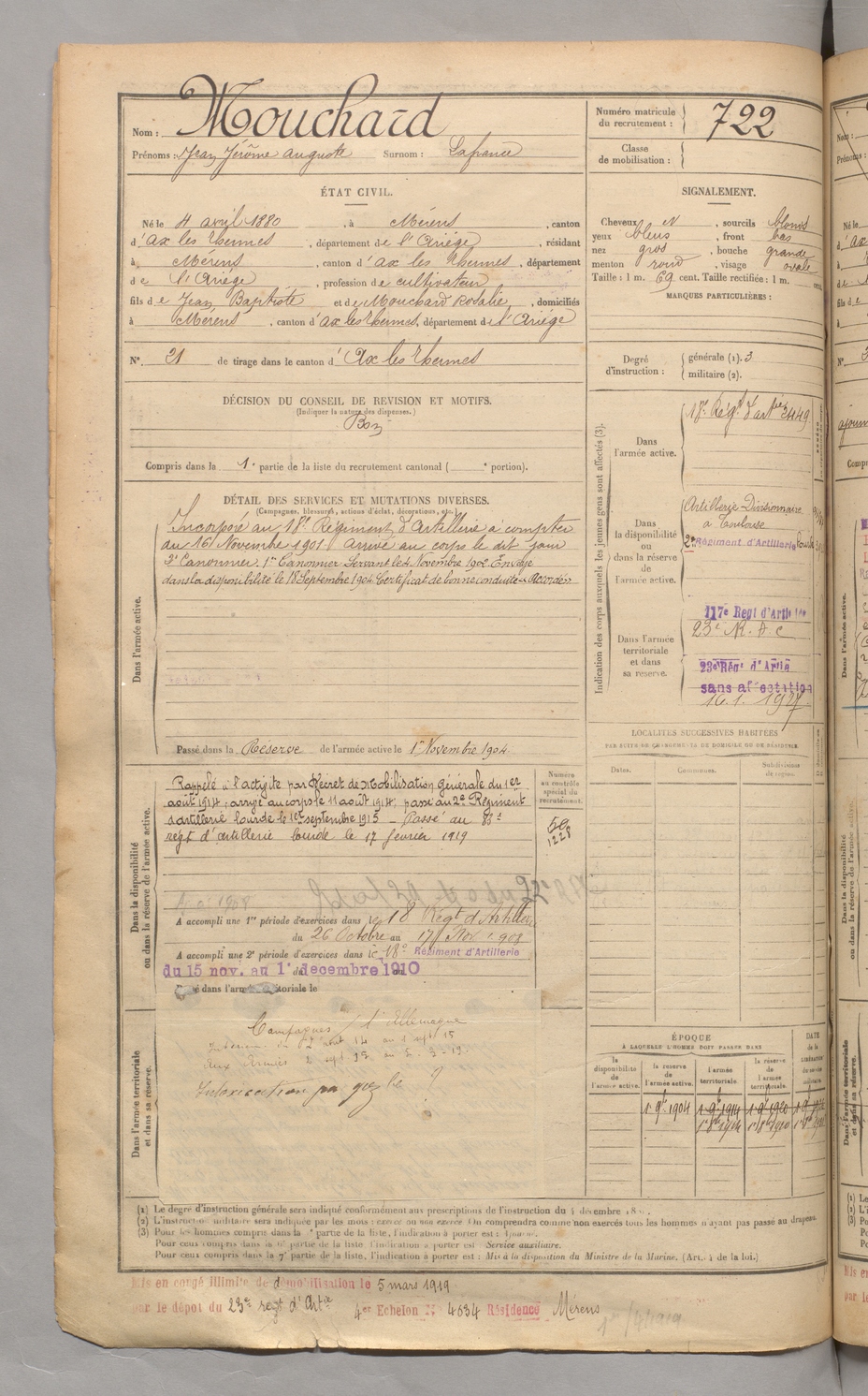 | Mouchard | Jean Jérôme Auguste dit Lafrance | FOIX | 129 W 3 | 1900 | Mérens-les-Vals | Mérens-les-Vals | 722 |