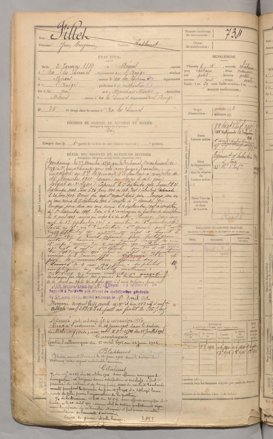 | Fillet | Jean Benjamin dit Pastouret | FOIX | 129 W 3 | 1900 | Mérens-les-Vals | Mérens-les-Vals | 734 |