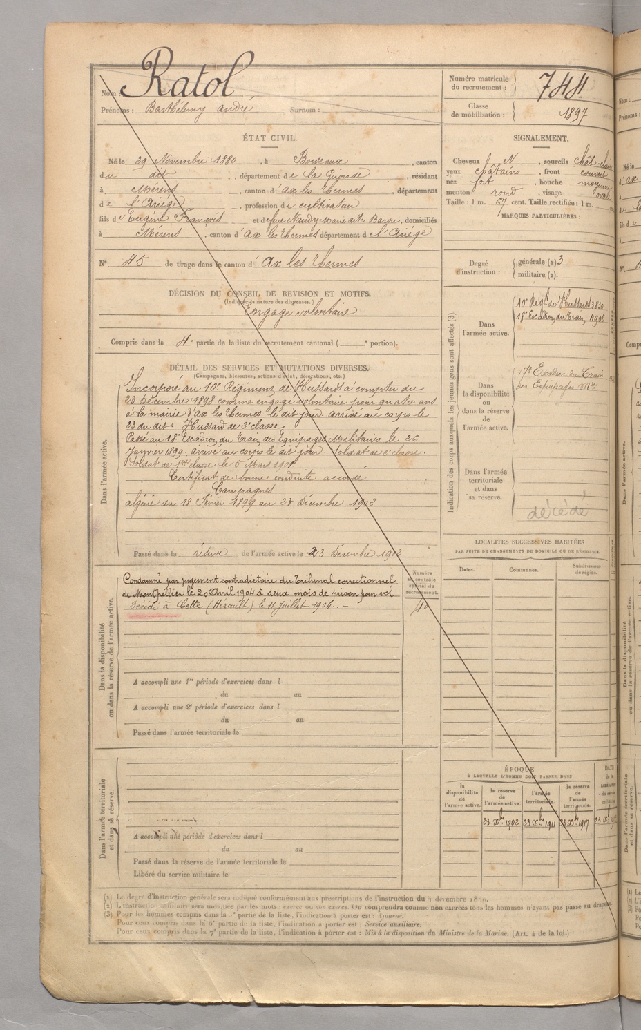 | Ratol | Barthélemy André | FOIX | 129 W 3 | 1900 | Bordeaux | Mérens-les-Vals | 744 |