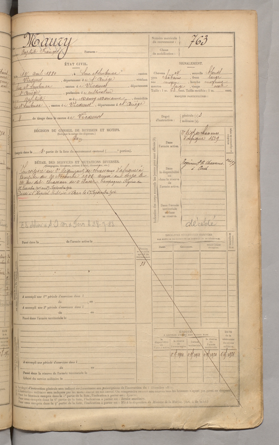 | Maury | Baptiste François | FOIX | 129 W 3 | 1900 | Suc-et-Sentenac | Suc-et-Sentenac | 763 |