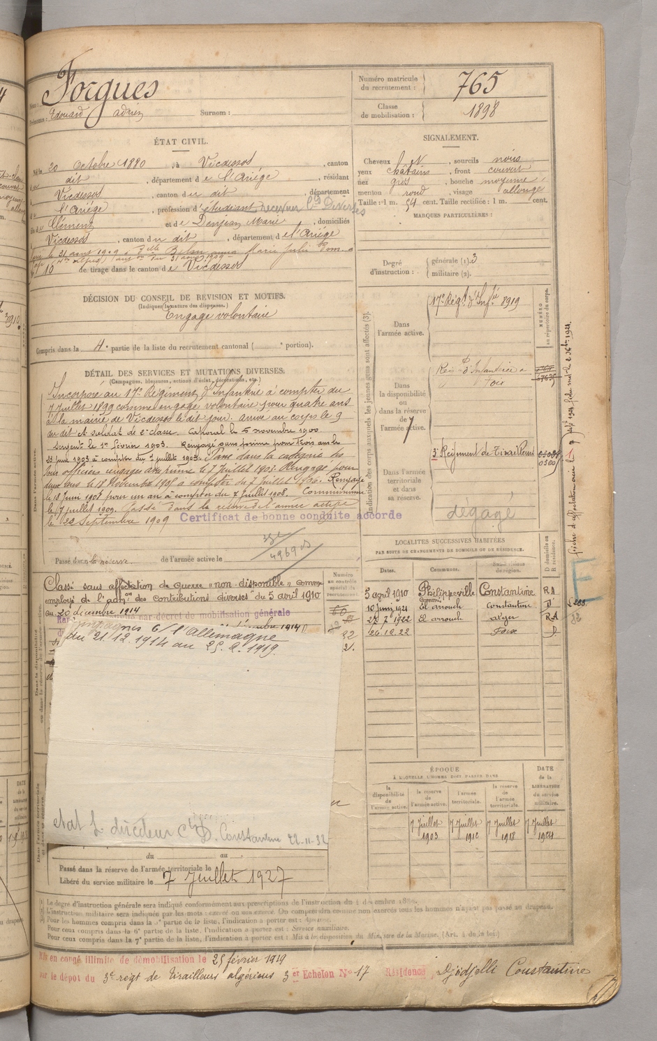 | Augé | Antoine dit Dellard | FOIX | 129 W 3 | 1900 | Lercoul | Lercoul | 764 |