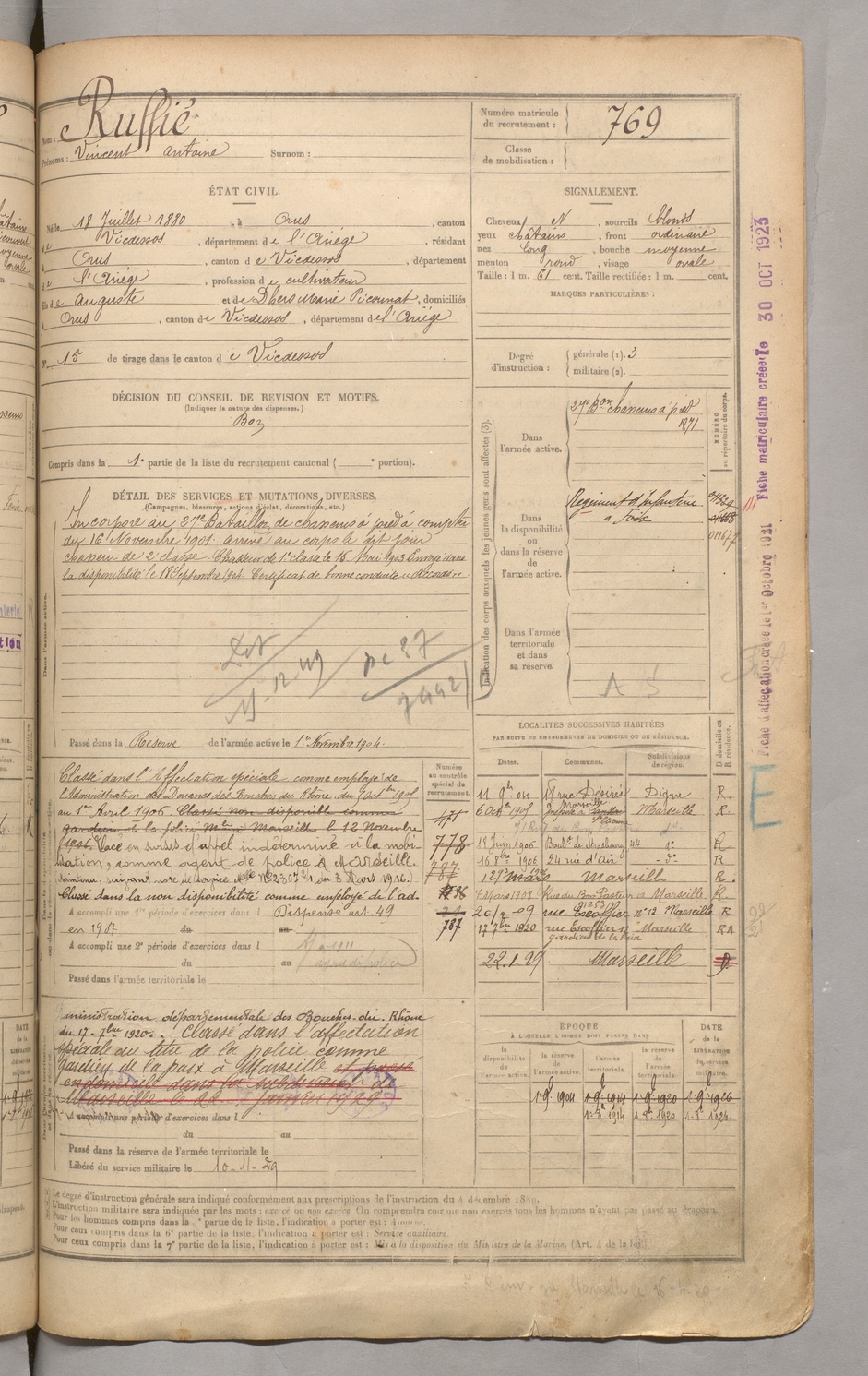 | Ruffié | Vincent Antoine | FOIX | 129 W 3 | 1900 | Orus | Orus | 769 |