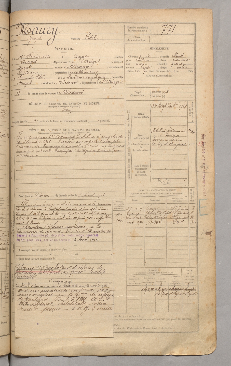 | Maury | Joseph dit Pitol | FOIX | 129 W 3 | 1900 | Auzat | Auzat | 771 |