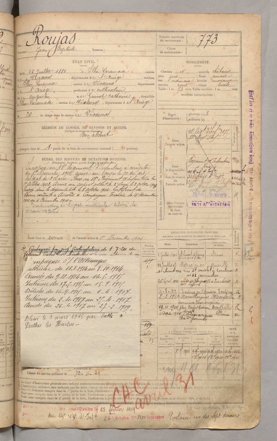 | Roujas | Jean Baptiste | FOIX | 129 W 3 | 1900 | Illier-Laramade | Illier-Laramade | 773 |