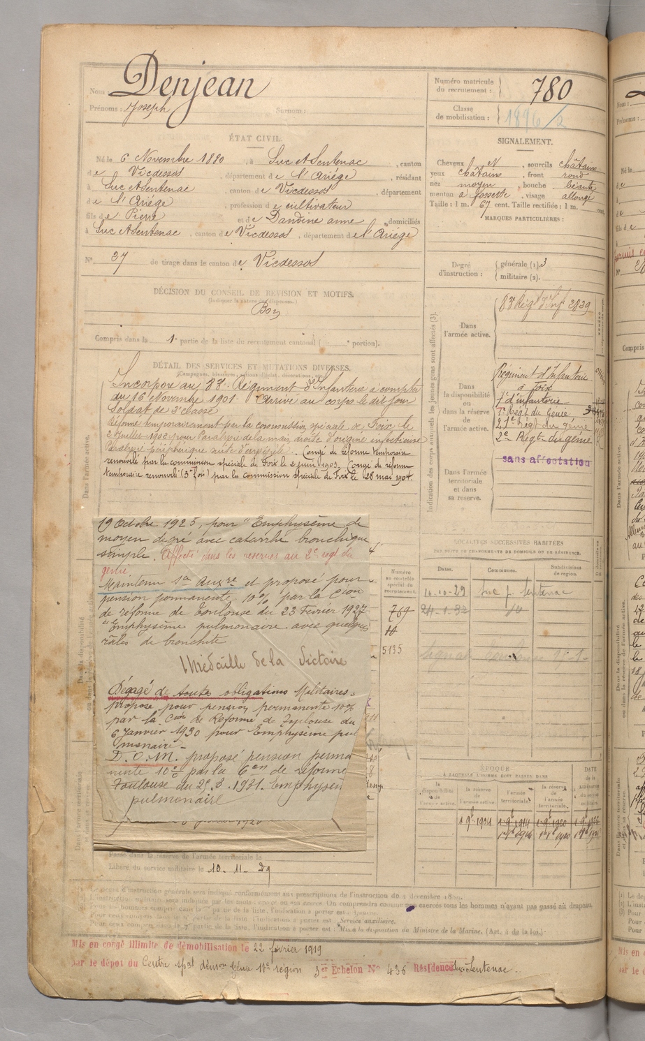 | Denjean | Joseph | FOIX | 129 W 3 | 1900 | Suc-et-Sentenac | Suc-et-Sentenac | 780 |