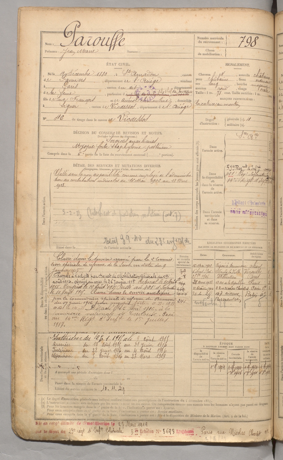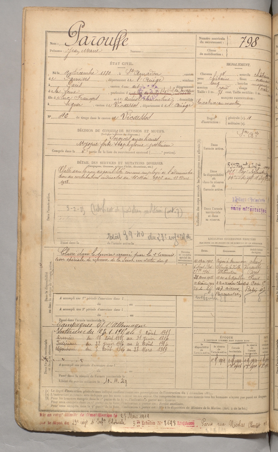 | Parouffe | Jean Marie | FOIX | 129 W 3 | 1900 | Saint-Amadou | Paris | 798 |