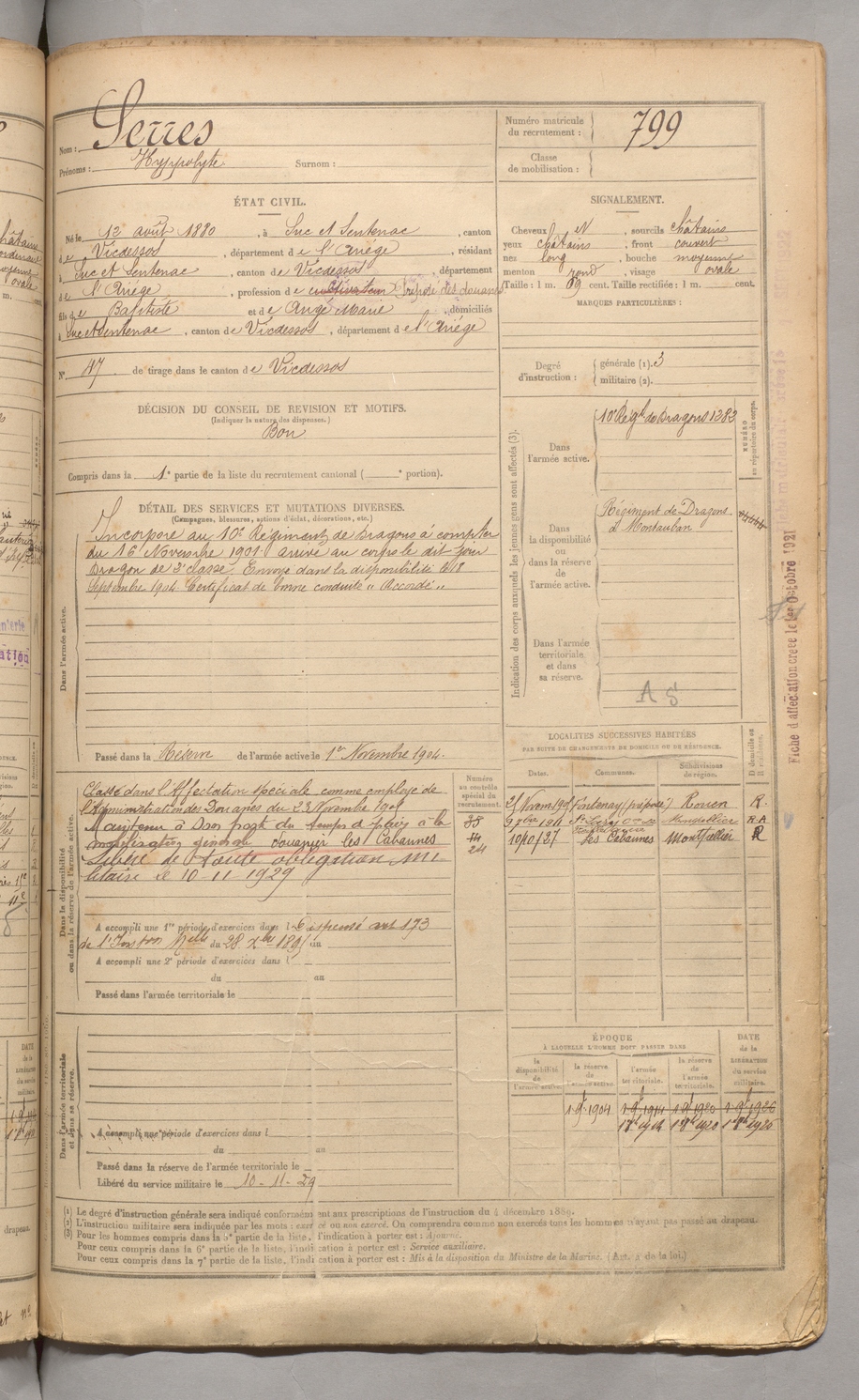 | Serres | Hyppolyte | FOIX | 129 W 3 | 1900 | Suc-et-Sentenac | Suc-et-Sentenac | 799 |