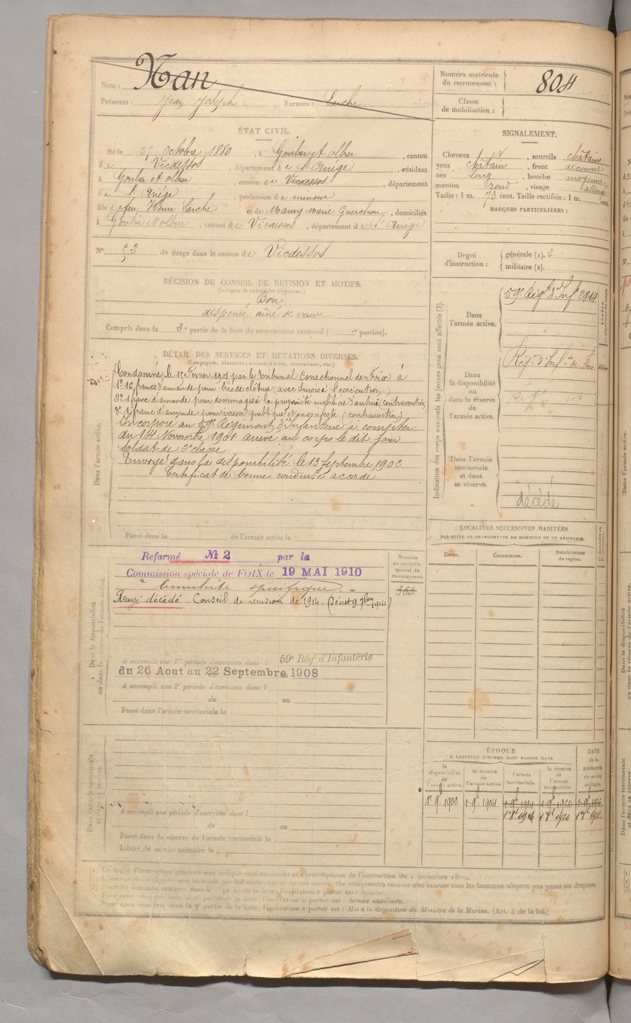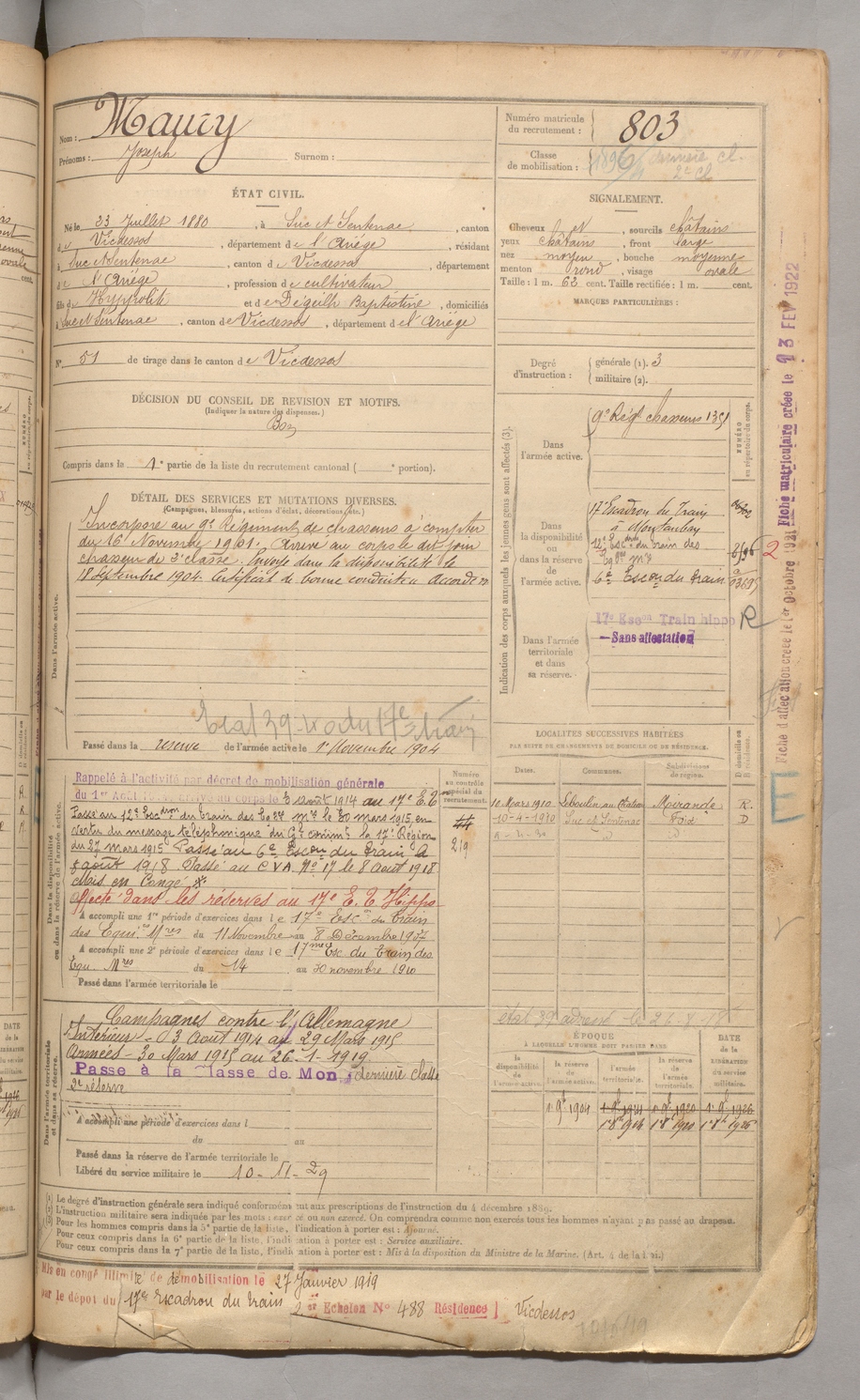 | Ousset | Joseph dit Barguère | FOIX | 129 W 5 | 1900 | Saint-Lary | Saint-Lary | 808 |