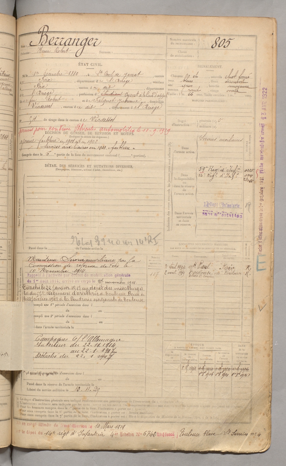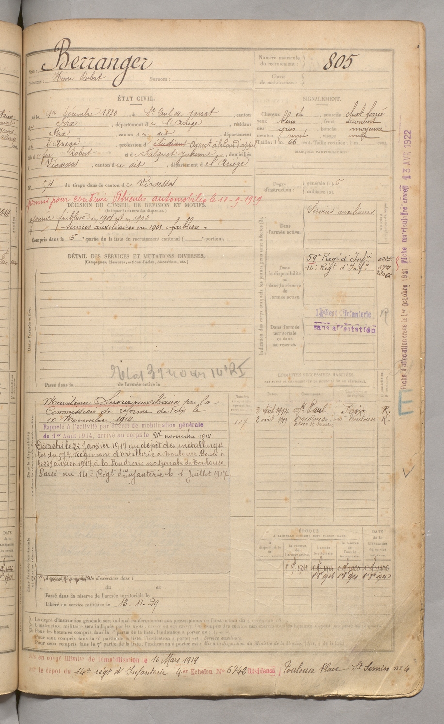 | Berranger | Henri Robert | FOIX | 129 W 3 | 1900 | Saint-Paul-de-Jarrat | Foix | 805 |