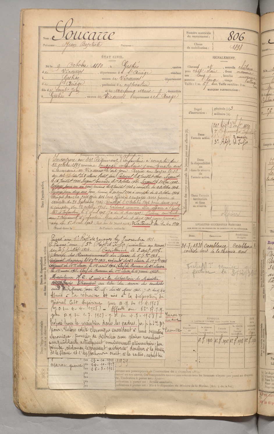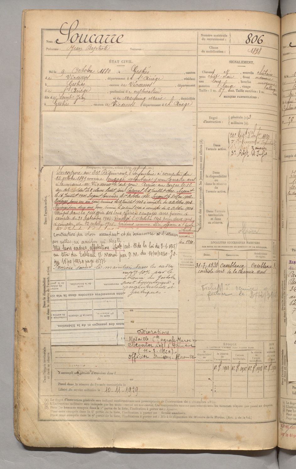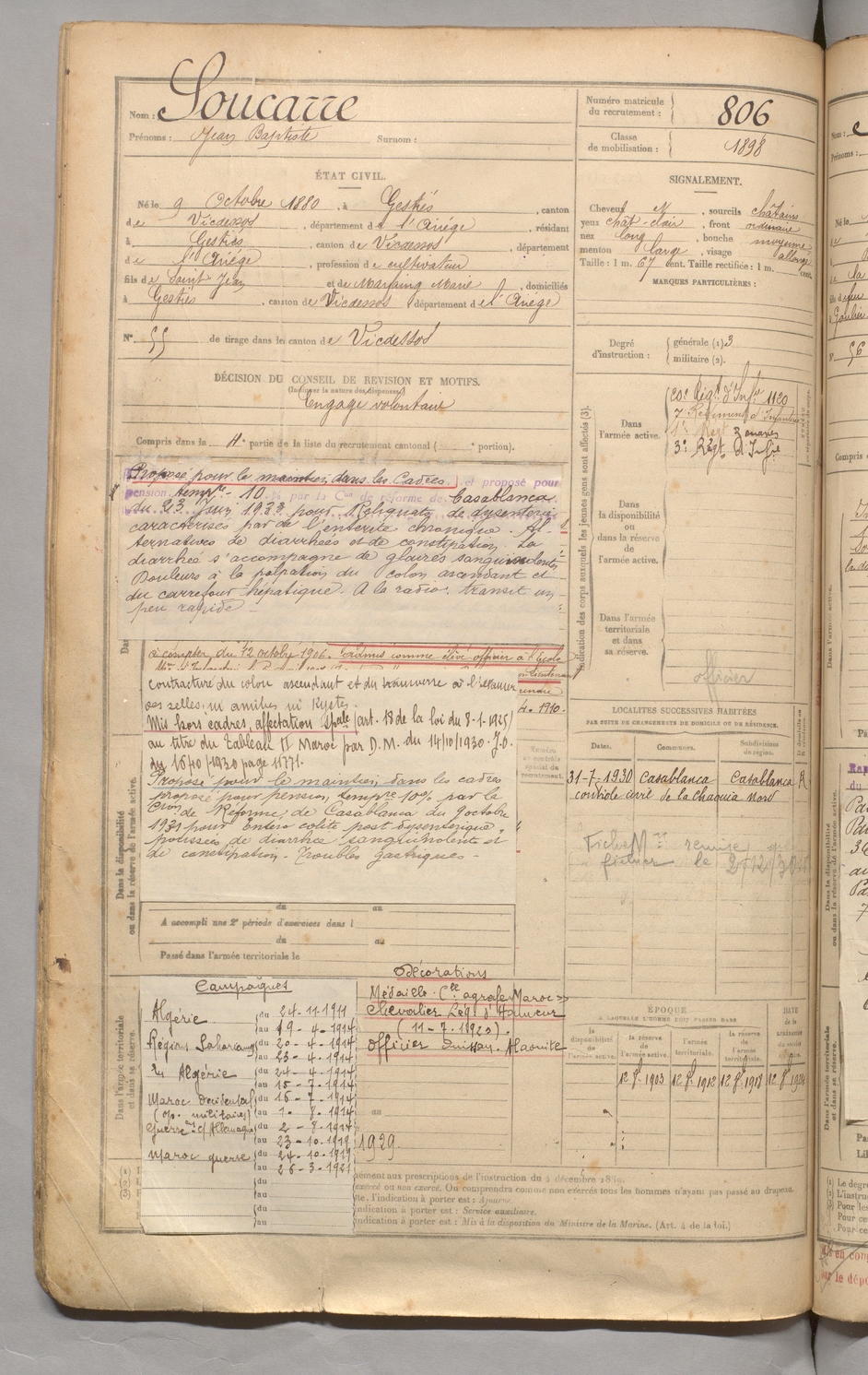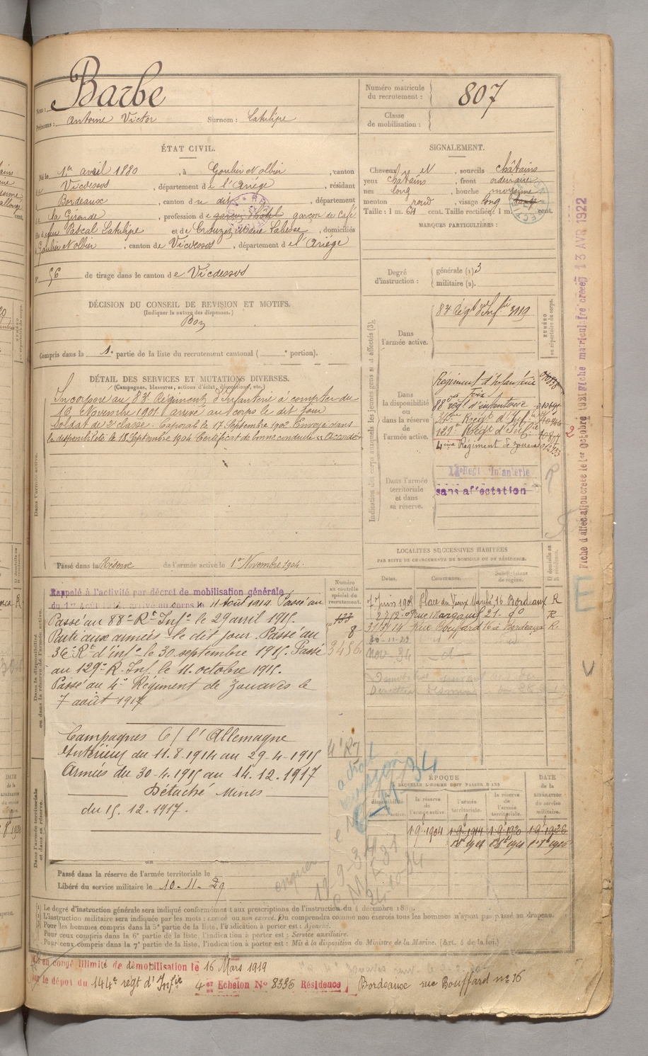 | Barbe | Antoine Victor dit Latulipe | FOIX | 129 W 3 | 1900 | Goulier-Olbier | Bordeaux | 807 |