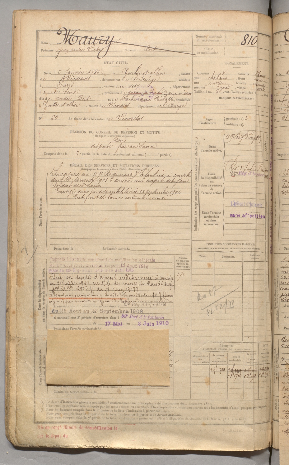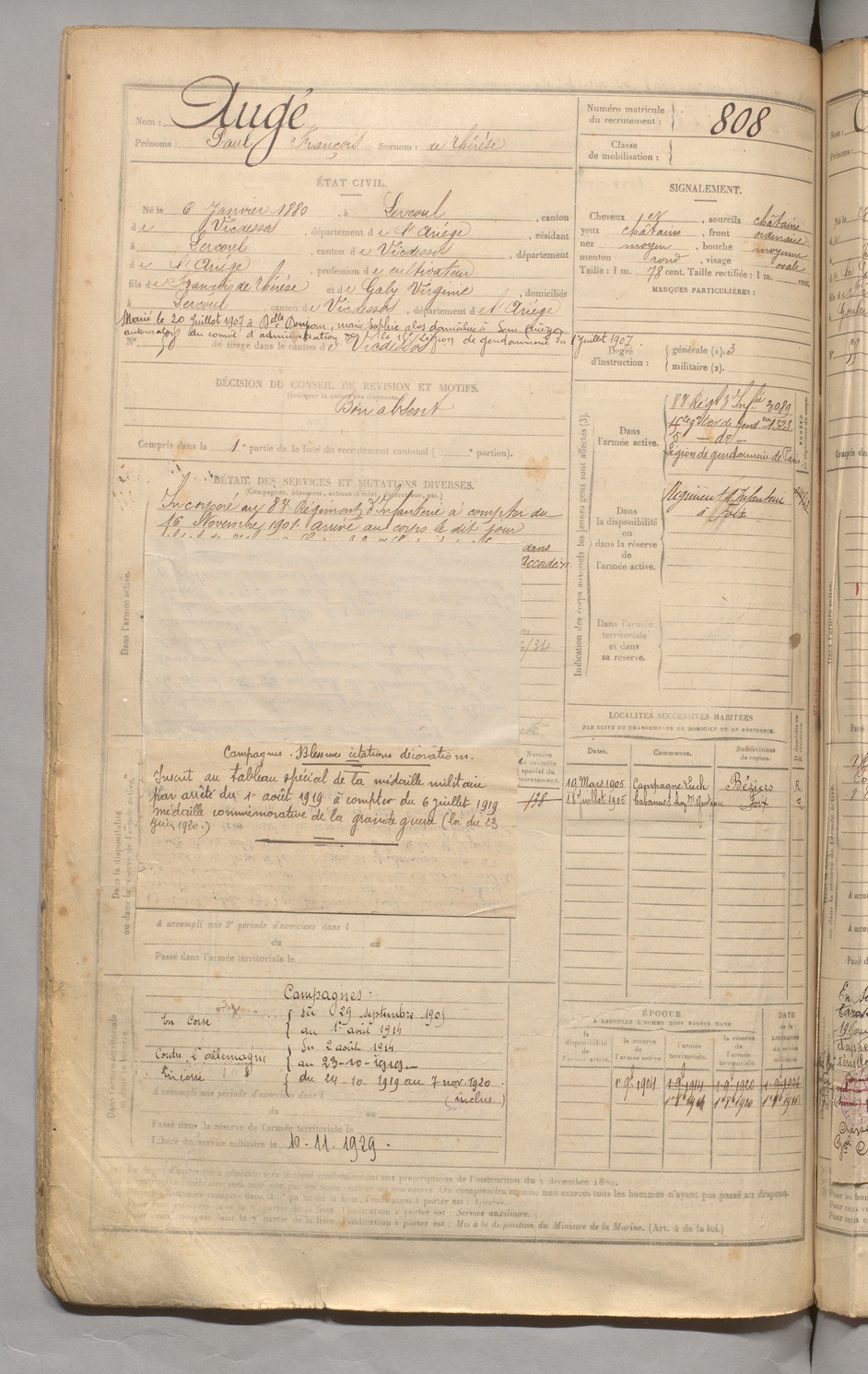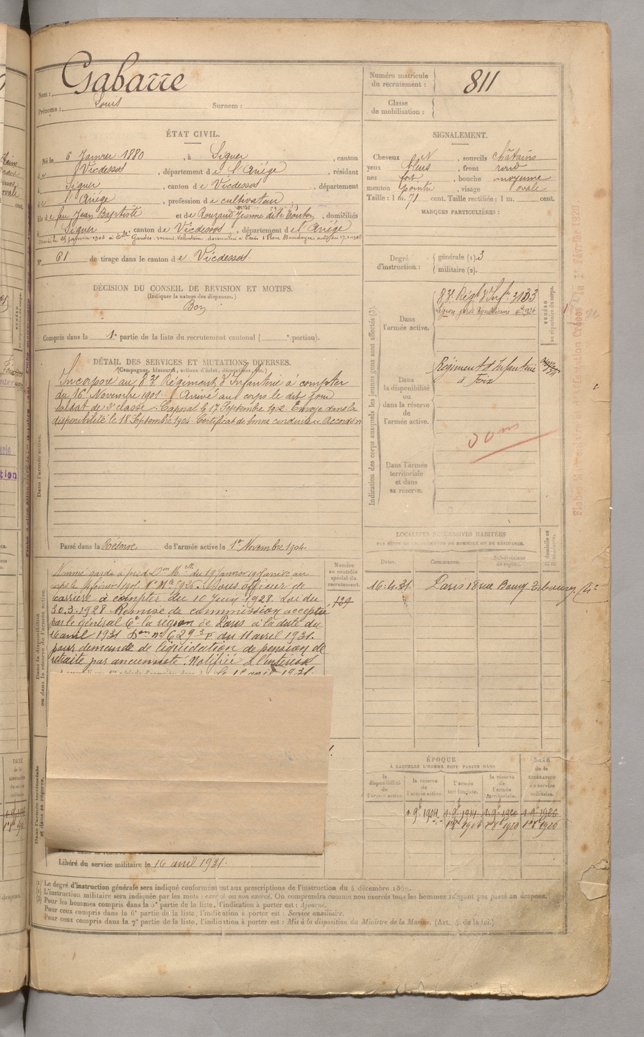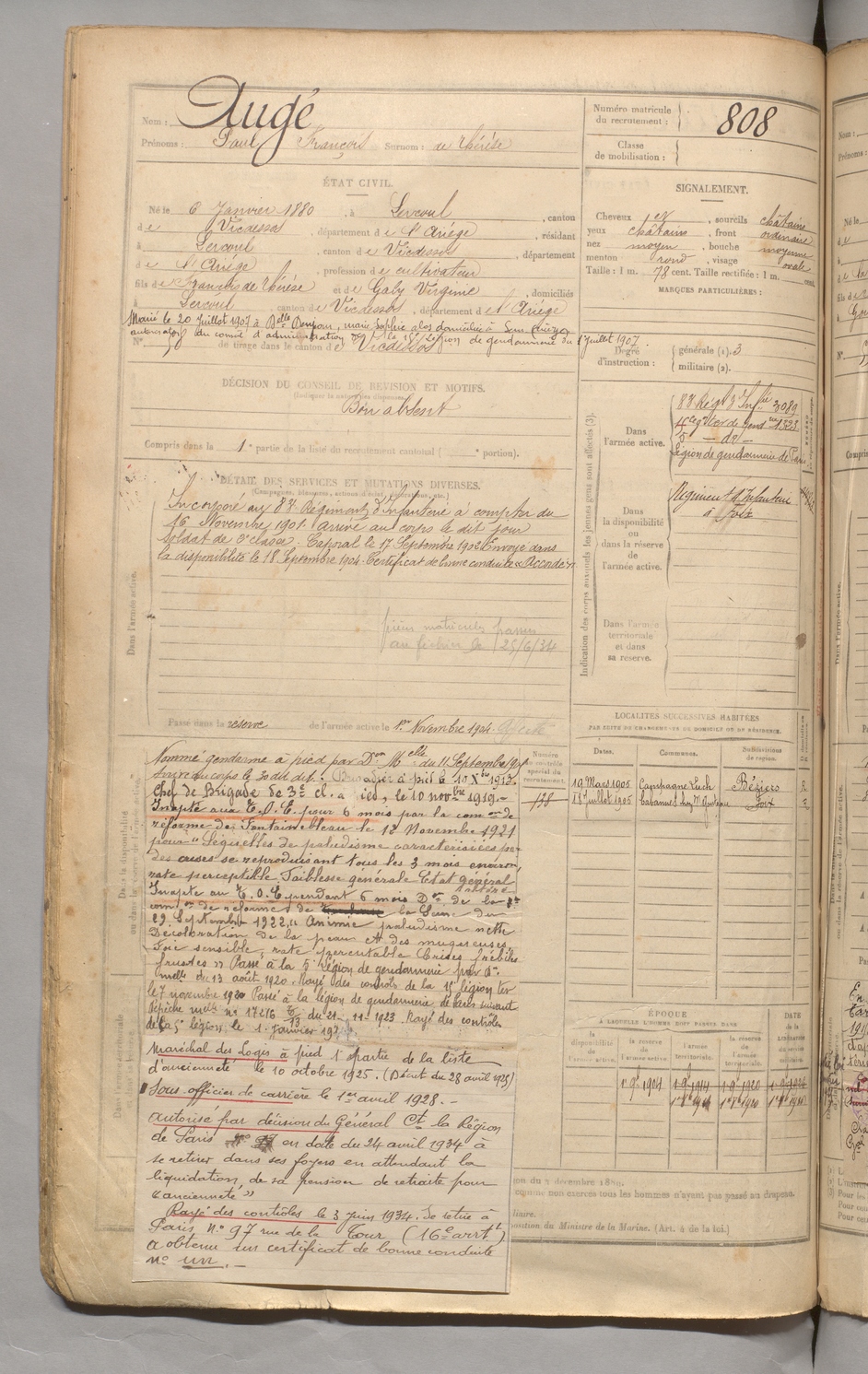 | Anglade | Joseph Jean Pierre dit Héritier | FOIX | 129 W 5 | 1900 | Bordes-sur-Lez | Montereau | 810 |