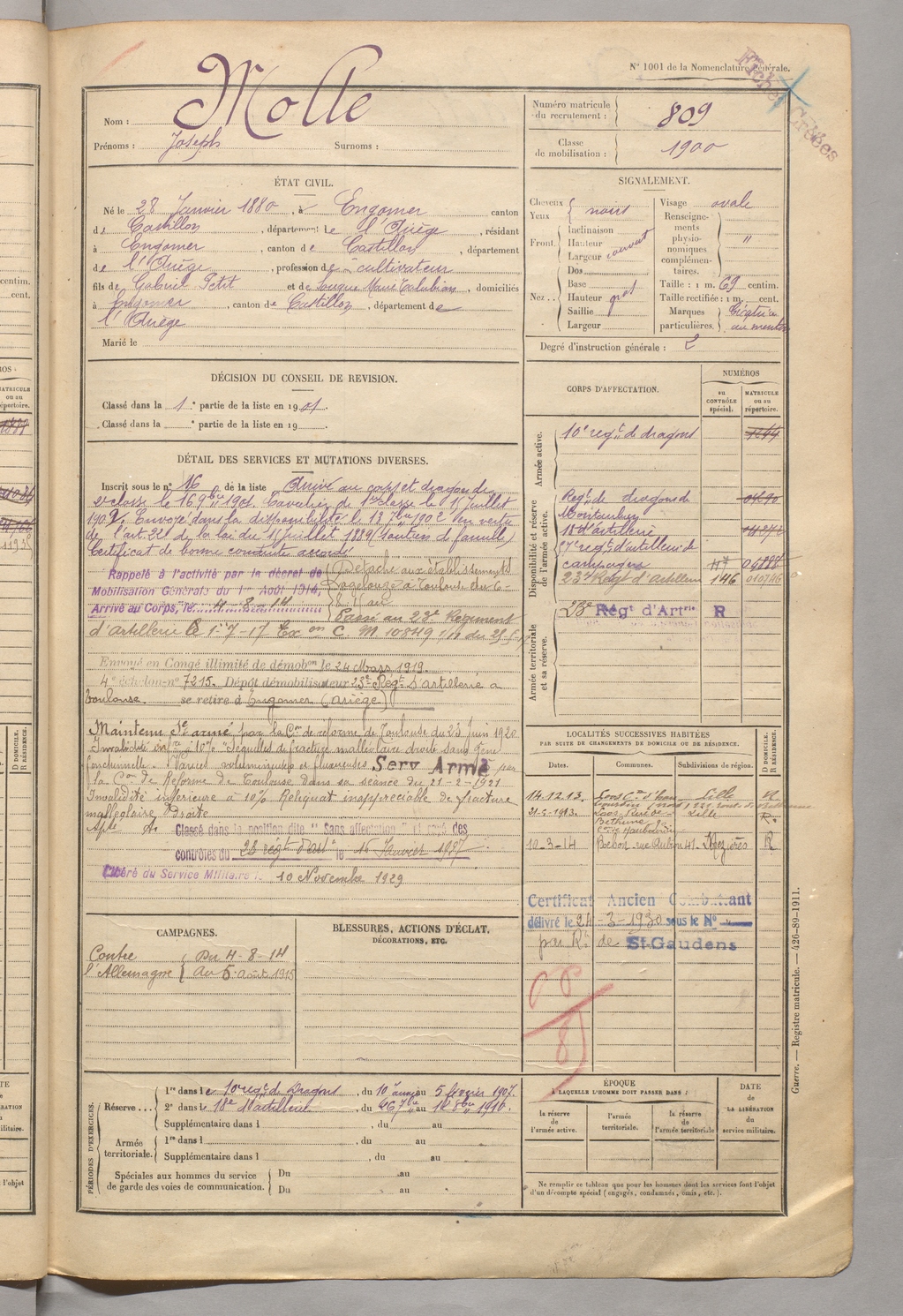 | Molle | Joseph | FOIX | 129 W 5 | 1900 | Engomer | Engomer | 809 |