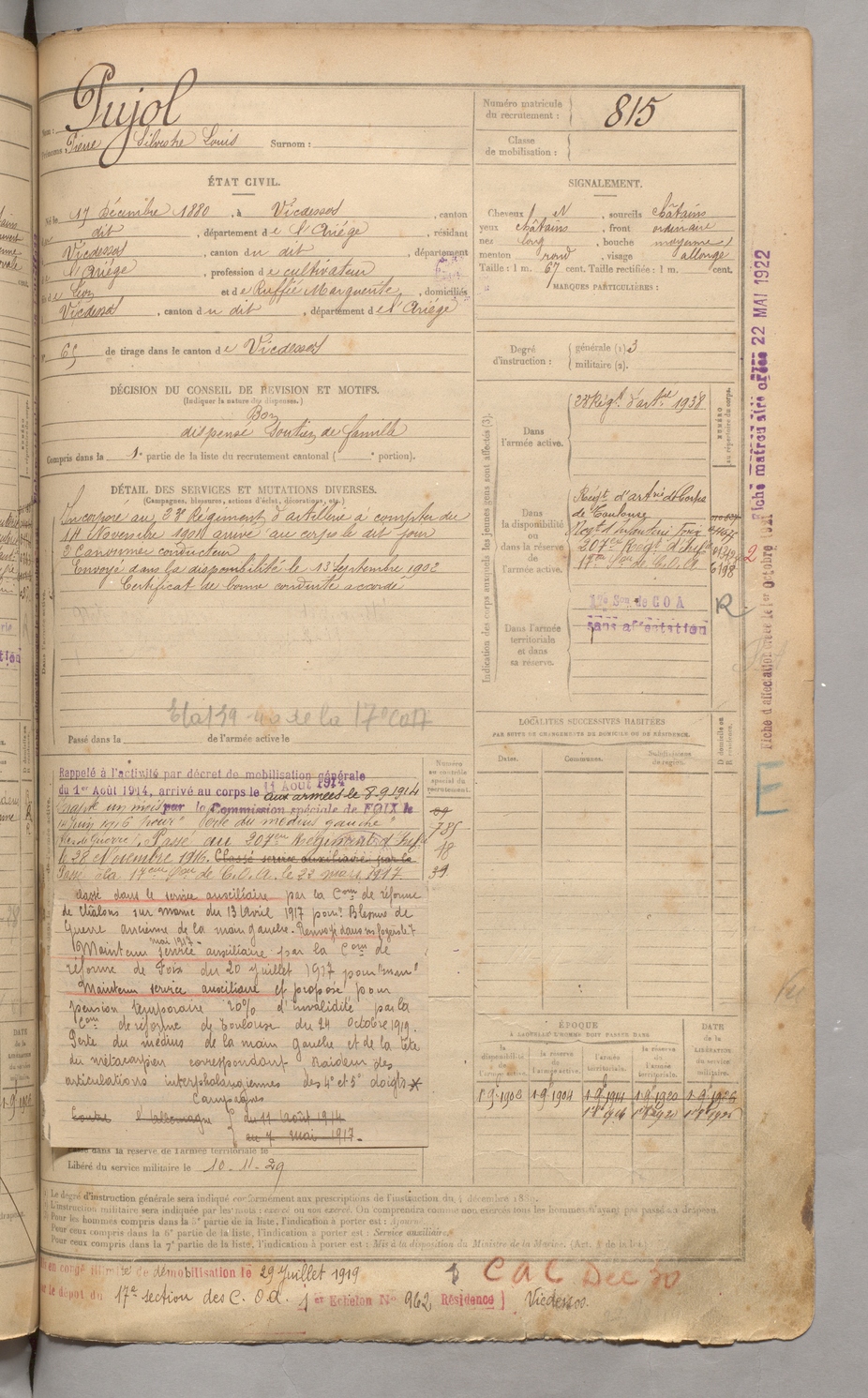 | Pujol | Pierre Silvestre Louis | FOIX | 129 W 3 | 1900 | Vicdessos | Vicdessos | 815 |