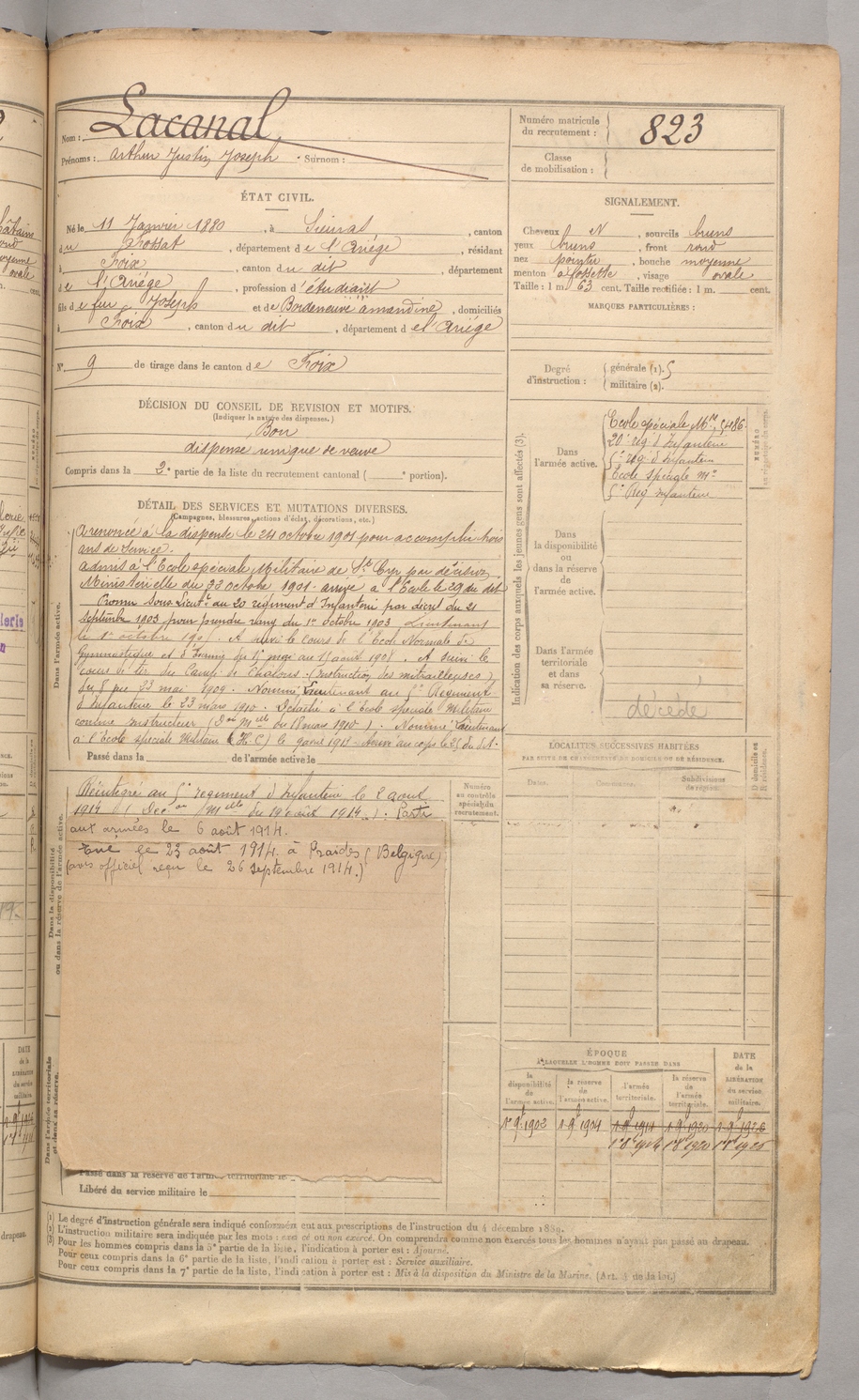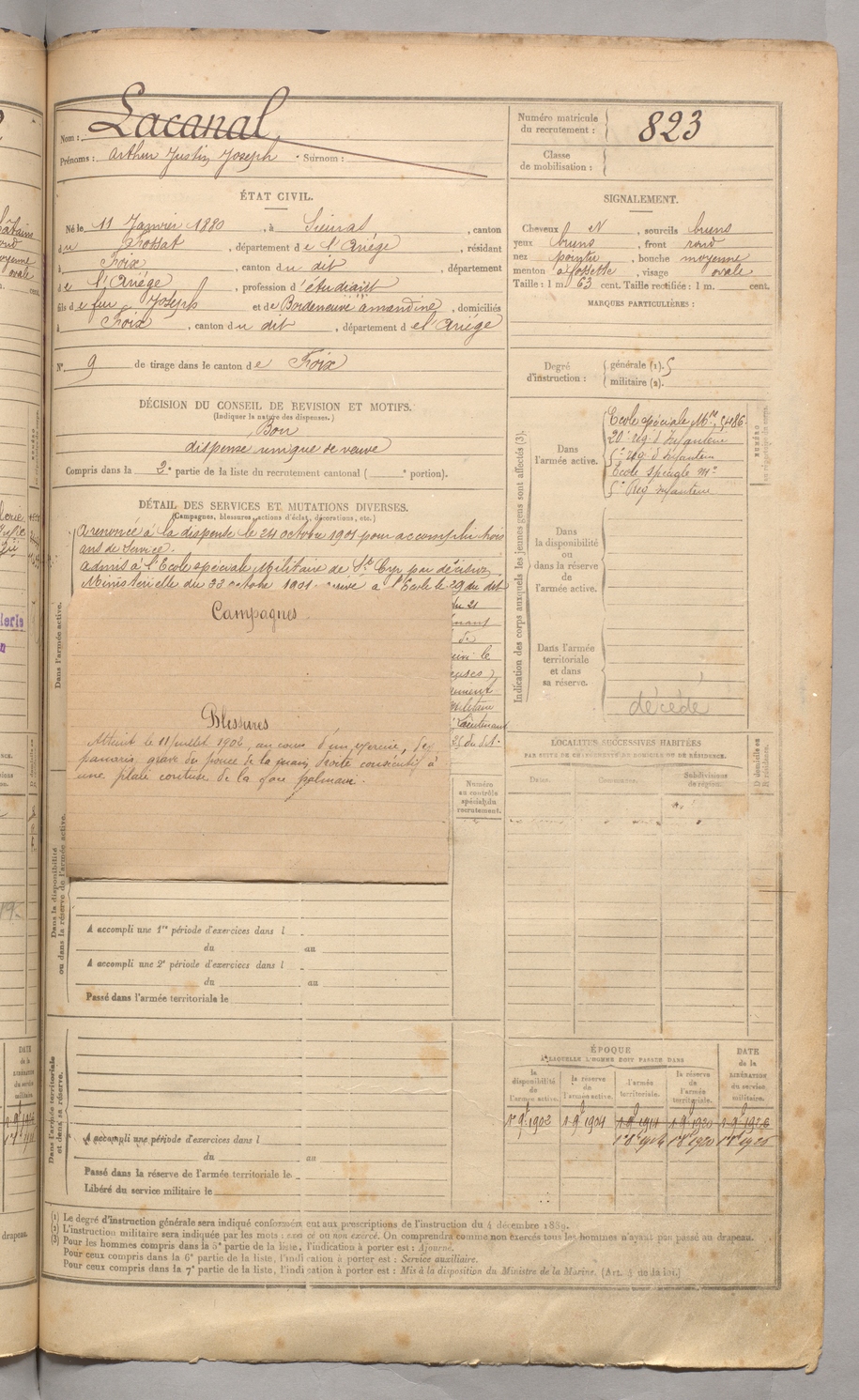 | Lacanal | Arthur Justin Joseph | FOIX | 129 W 3 | 1900 | Sieuras | Foix | 823 |