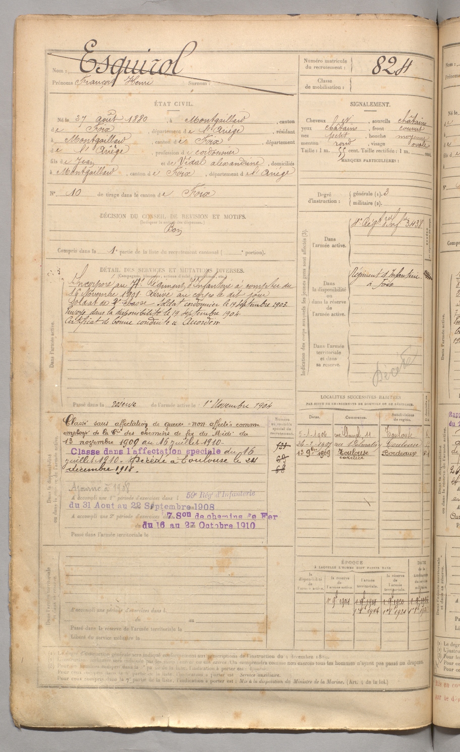 | Esquirol | François Henri | FOIX | 129 W 3 | 1900 | Montgailhard | Montgailhard | 824 |