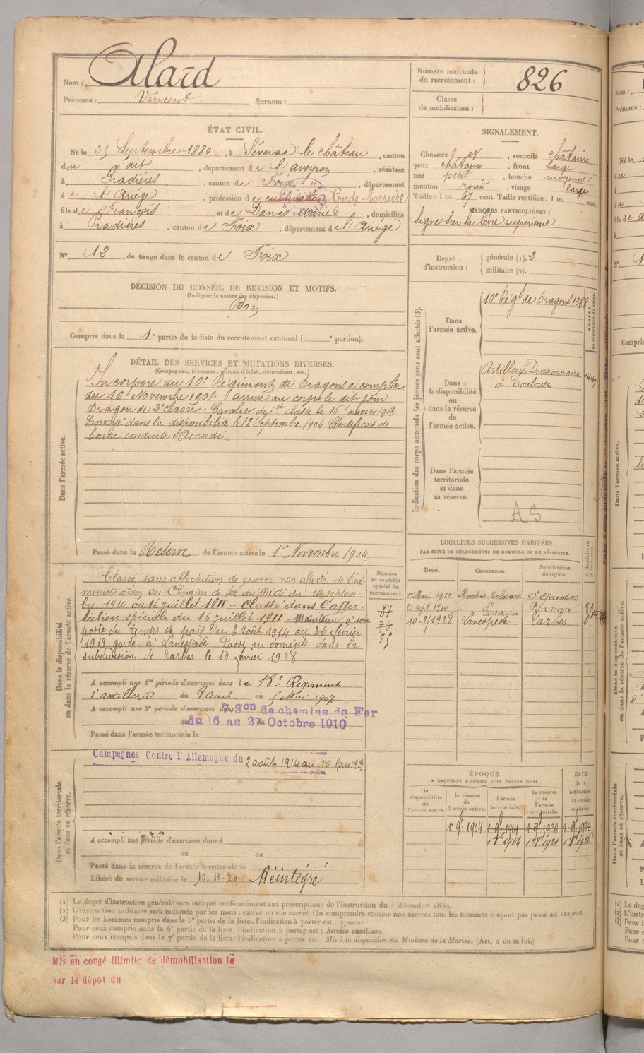| Alard | Vincent | FOIX | 129 W 3 | 1900 | Séverac-le-Châteaux | Pradières | 826 |