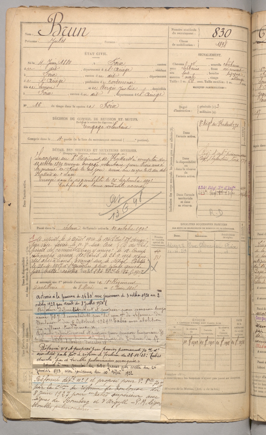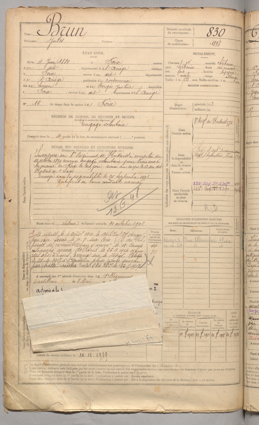 | Brun | Jules | FOIX | 129 W 3 | 1900 | Foix | Foix | 830 |