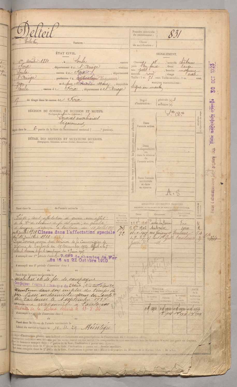 | Delteil | Célestin | FOIX | 129 W 3 | 1900 | Soula | Soula | 831 |