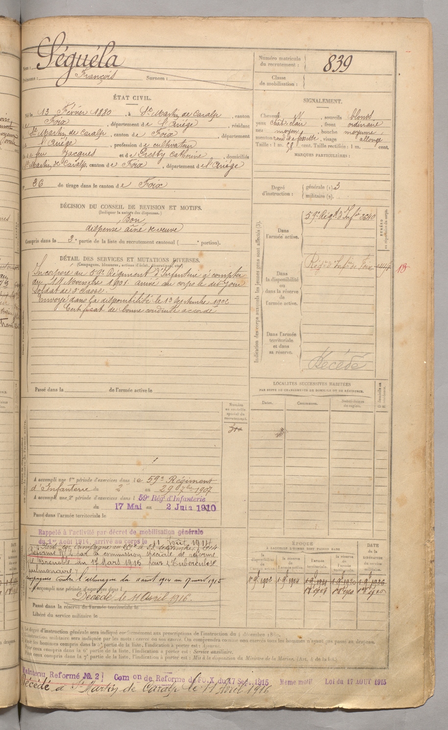 | Séguéla | François | FOIX | 129 W 3 | 1900 | Saint-Martin-de-Caralp | Saint-Martin-de-Caralp | 839 |