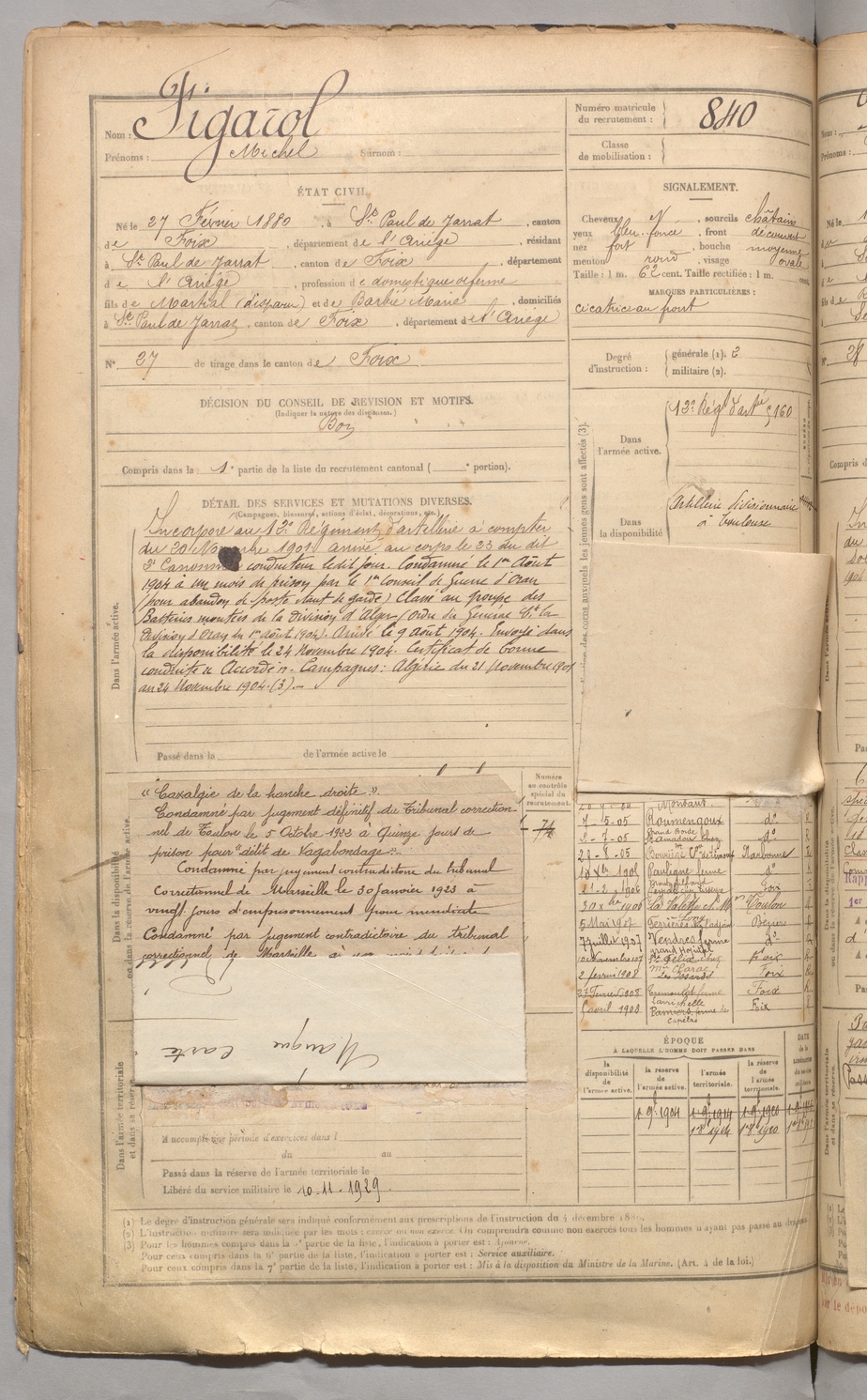 | Figarol | Michel | FOIX | 129 W 3 | 1900 | Saint-Paul-de-Jarrat | Saint-Paul-de-Jarrat | 840 |