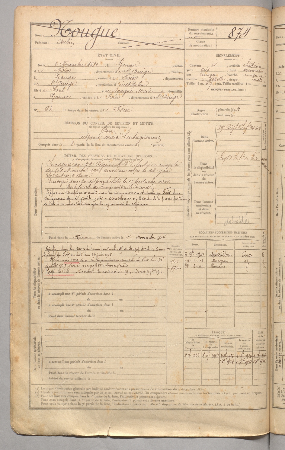 | Nougué | Aubin | FOIX | 129 W 3 | 1900 | Ganac | Ganac | 874 |