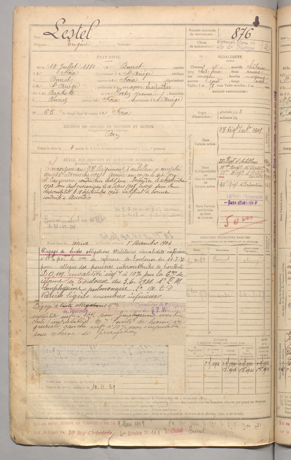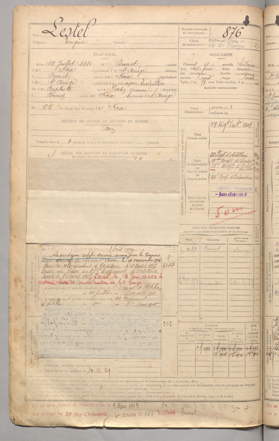 | Lestel | Eugène | FOIX | 129 W 3 | 1900 | Burret | Burret | 876 |