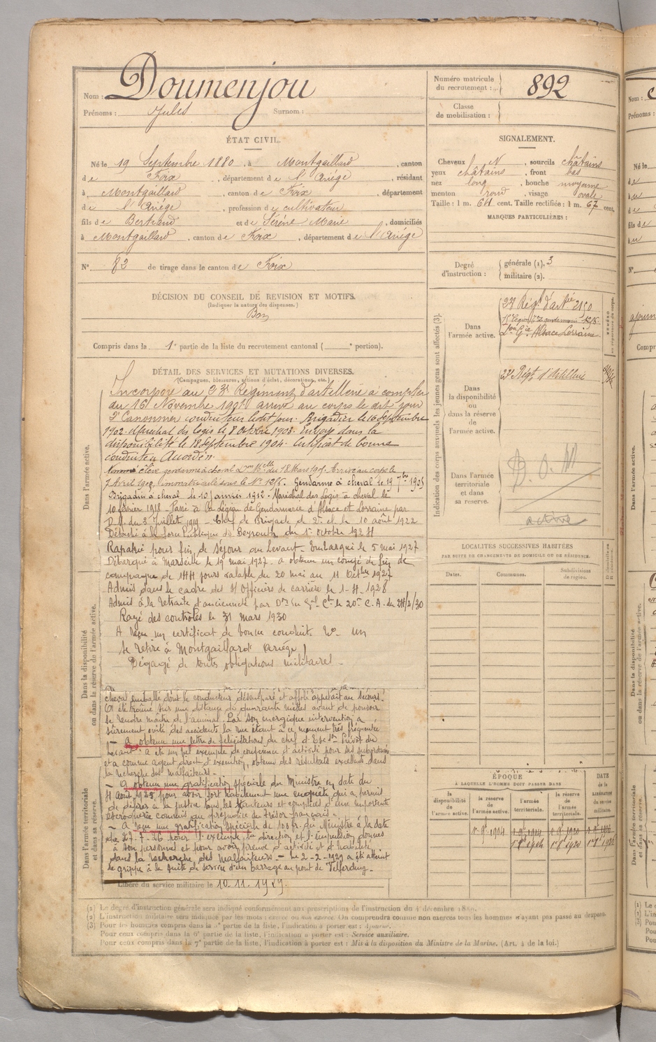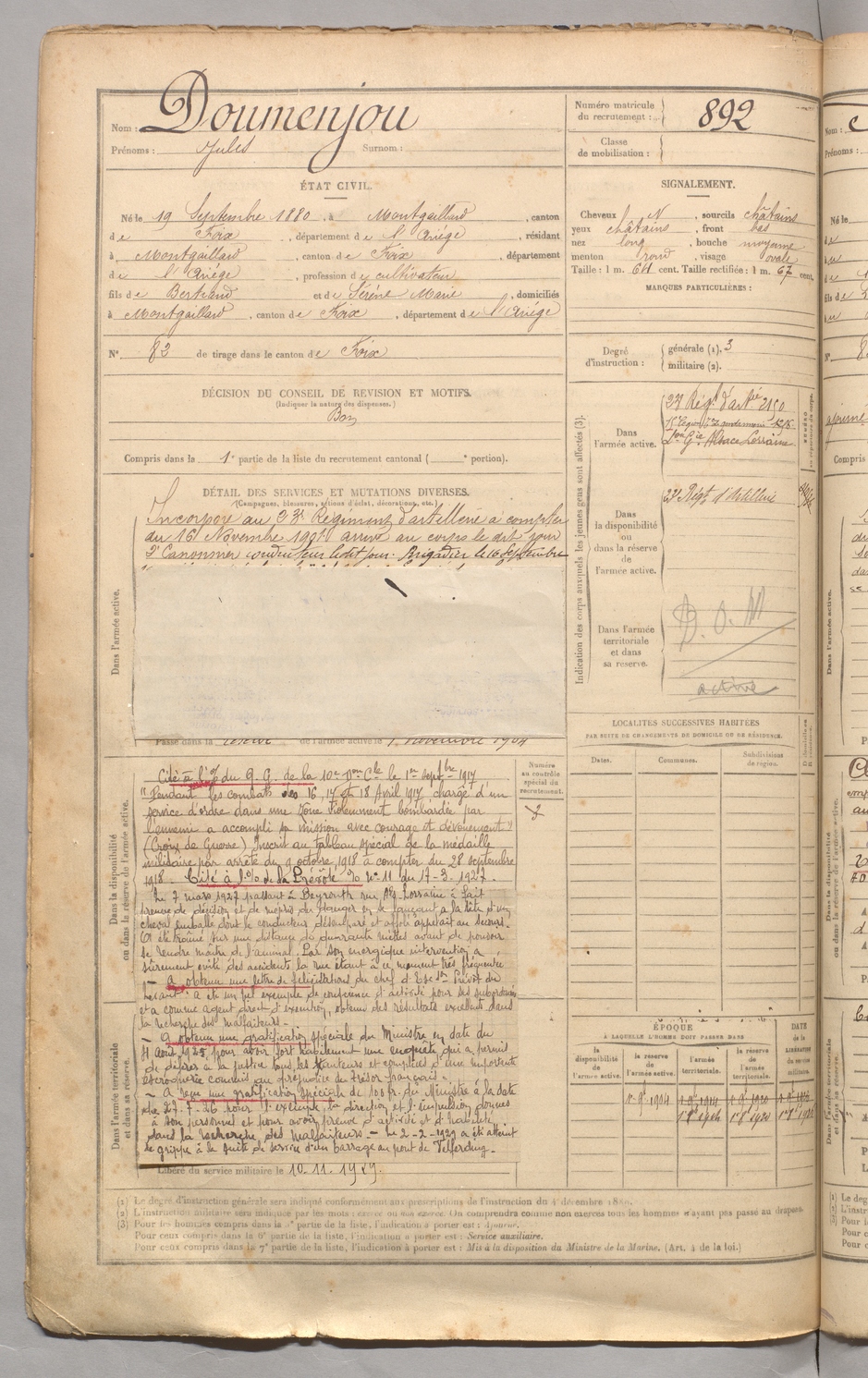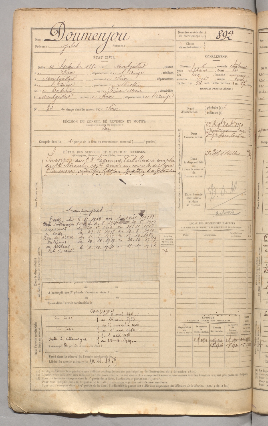 | Doumenjou | Jules | FOIX | 129 W 3 | 1900 | Montgailhard | Montgailhard | 892 |