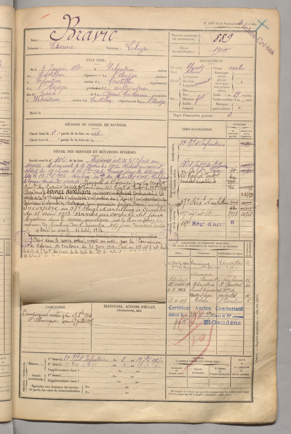 | Bravic | Etienne dit Lalaye | FOIX | 129 W 5 | 1900 | Uchentein | Uchentein | 889 |