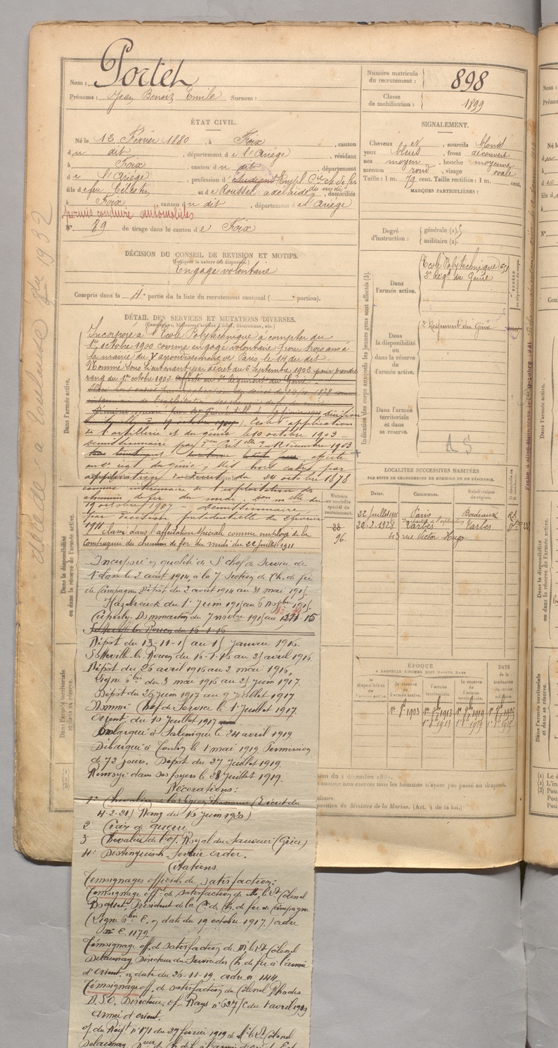 | Portet | Jean Benoît Emile | FOIX | 129 W 3 | 1900 | Foix | Foix | 898 |