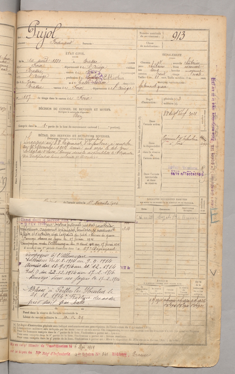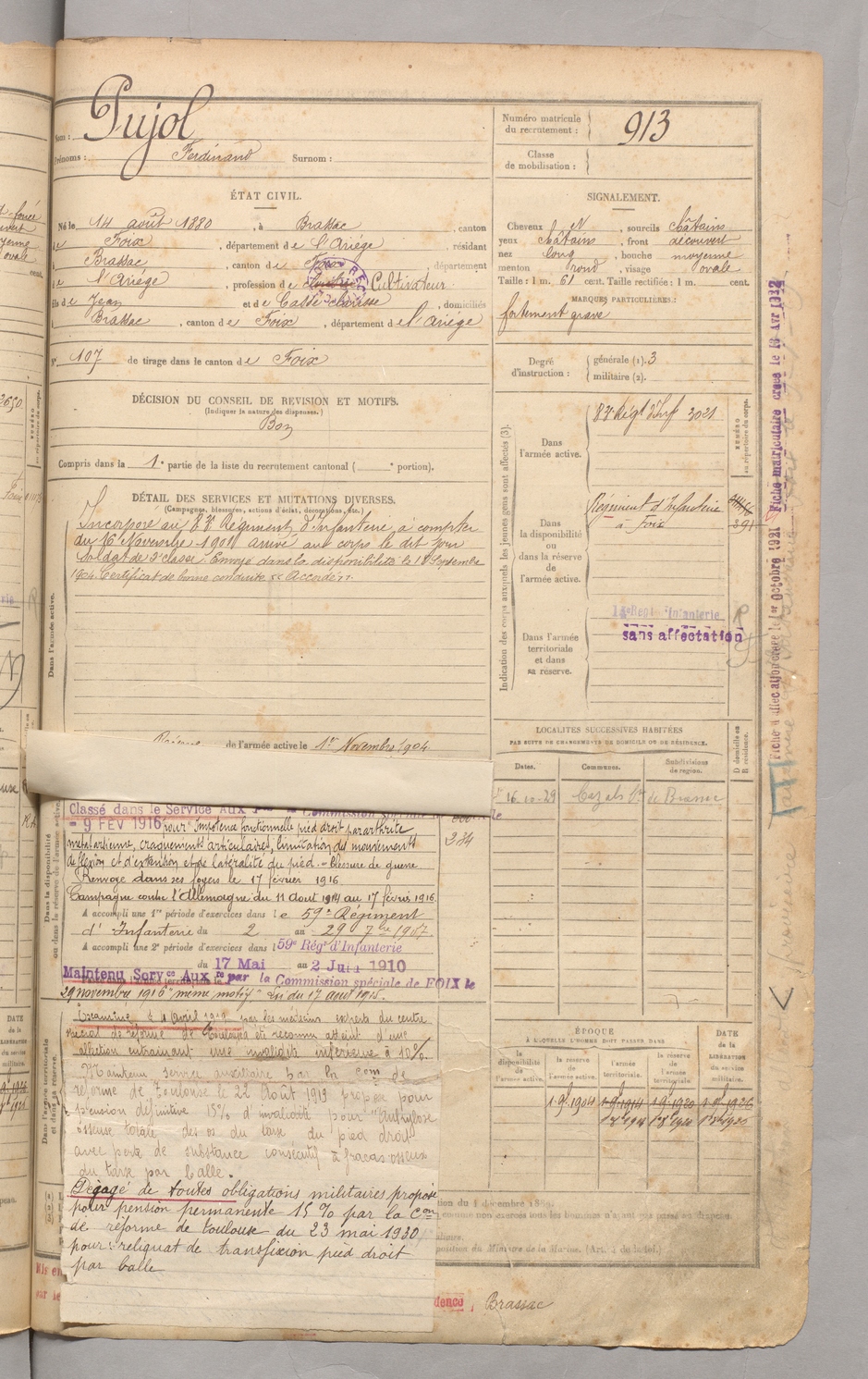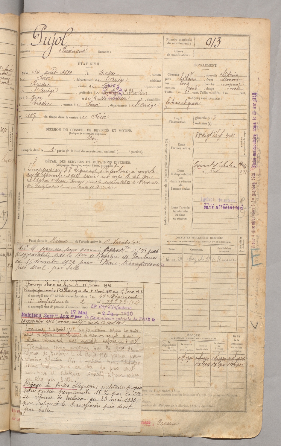 | Pujol | Ferdinand | FOIX | 129 W 3 | 1900 | Brassac | Brassac | 913 |