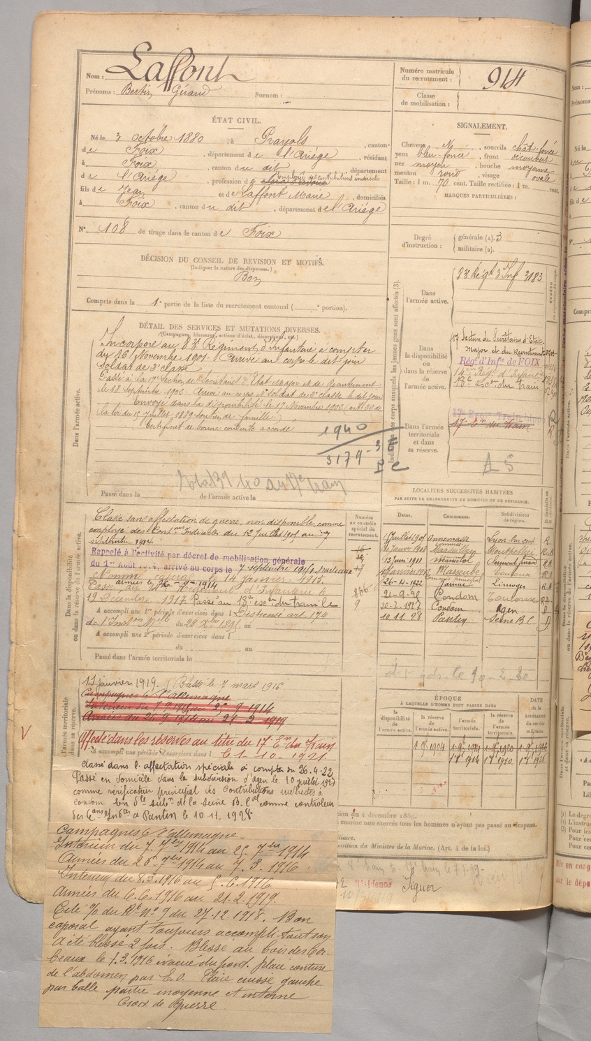 | Laffont | Bertin Géraud | FOIX | 129 W 3 | 1900 | Prayols | Foix | 914 |