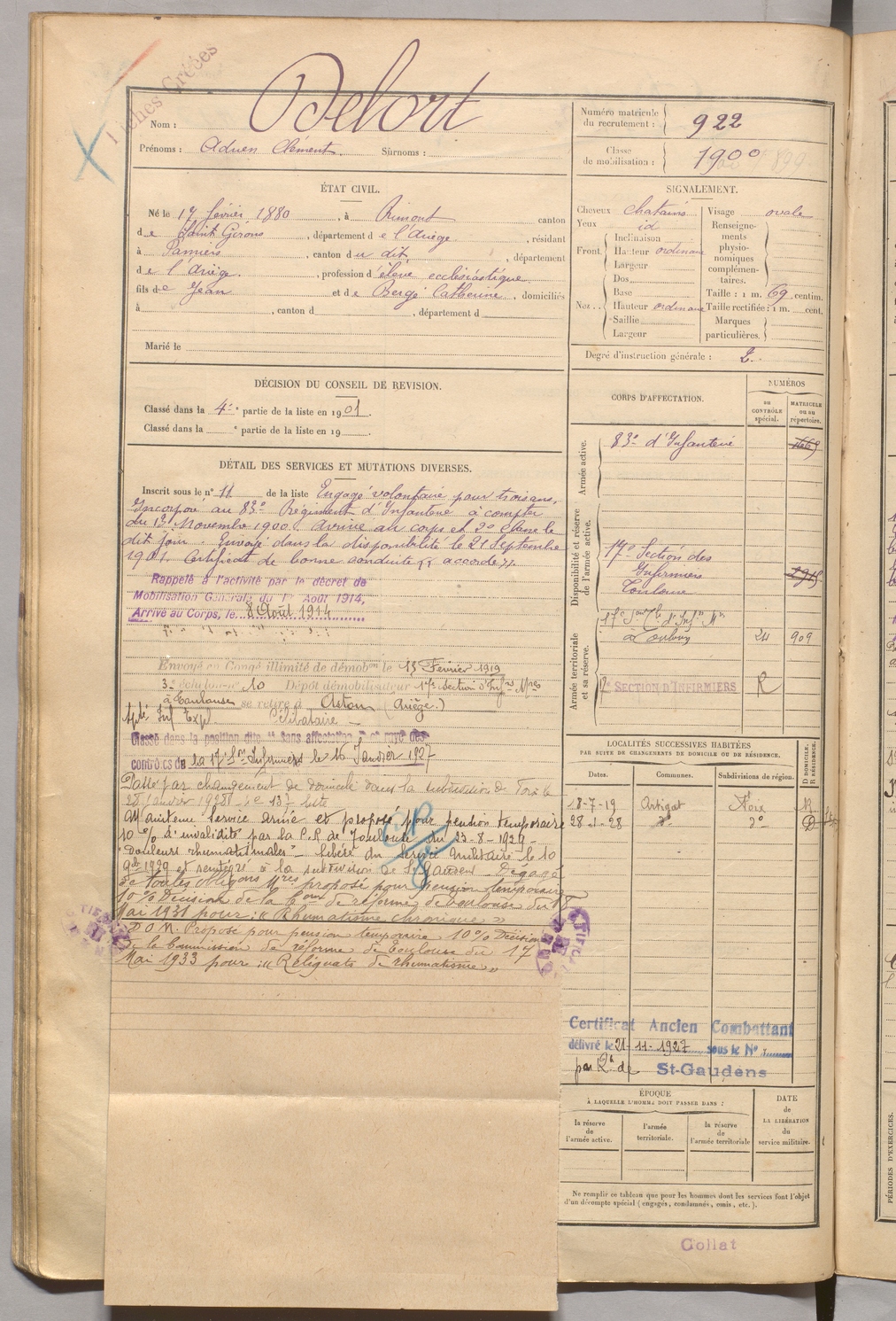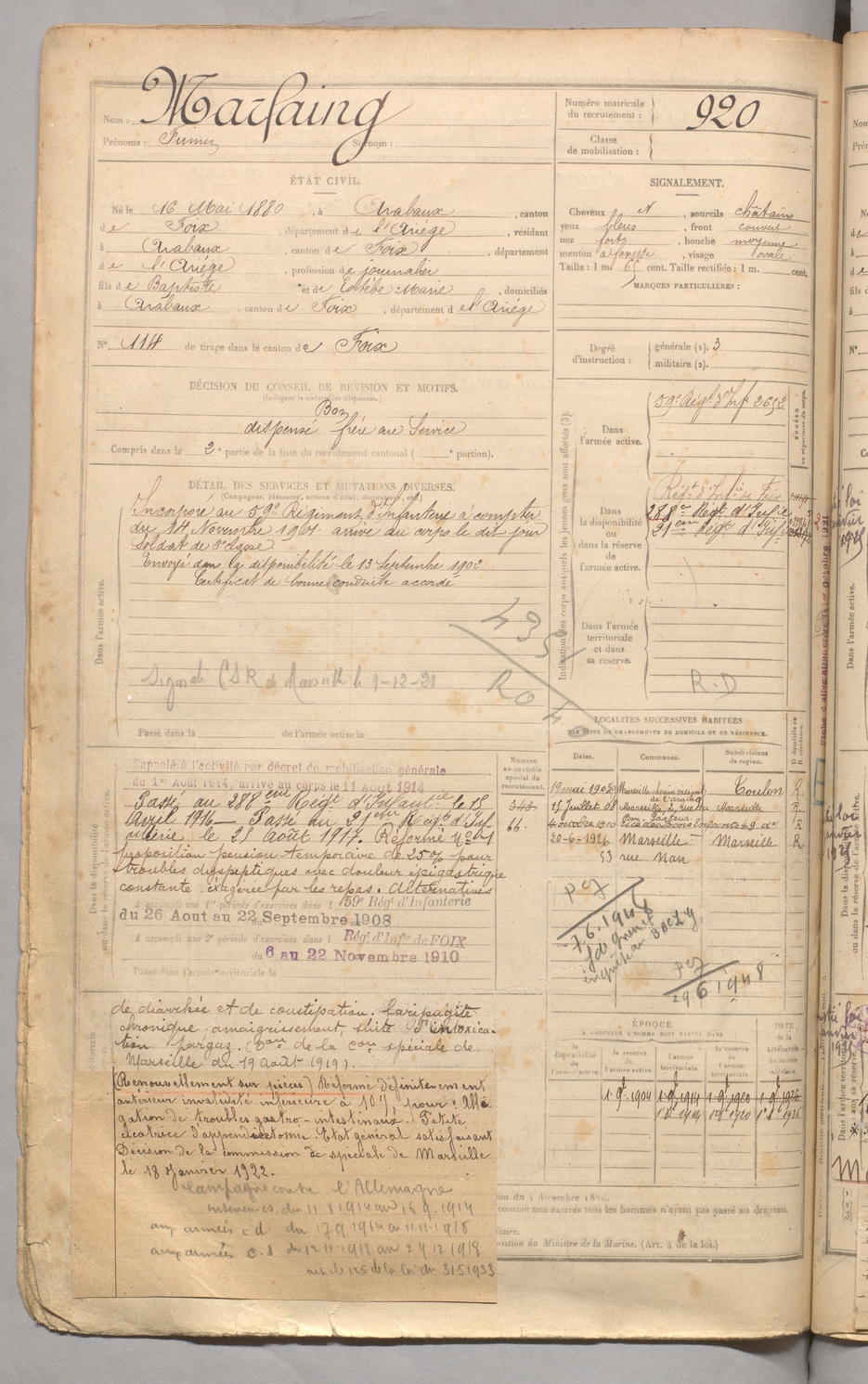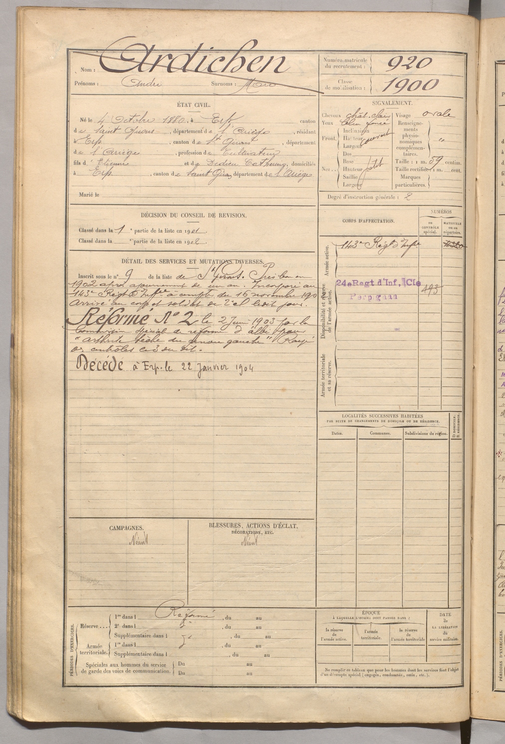 | Ardichen | André dit Marc | FOIX | 129 W 5 | 1900 | Erp | Erp | 920 |