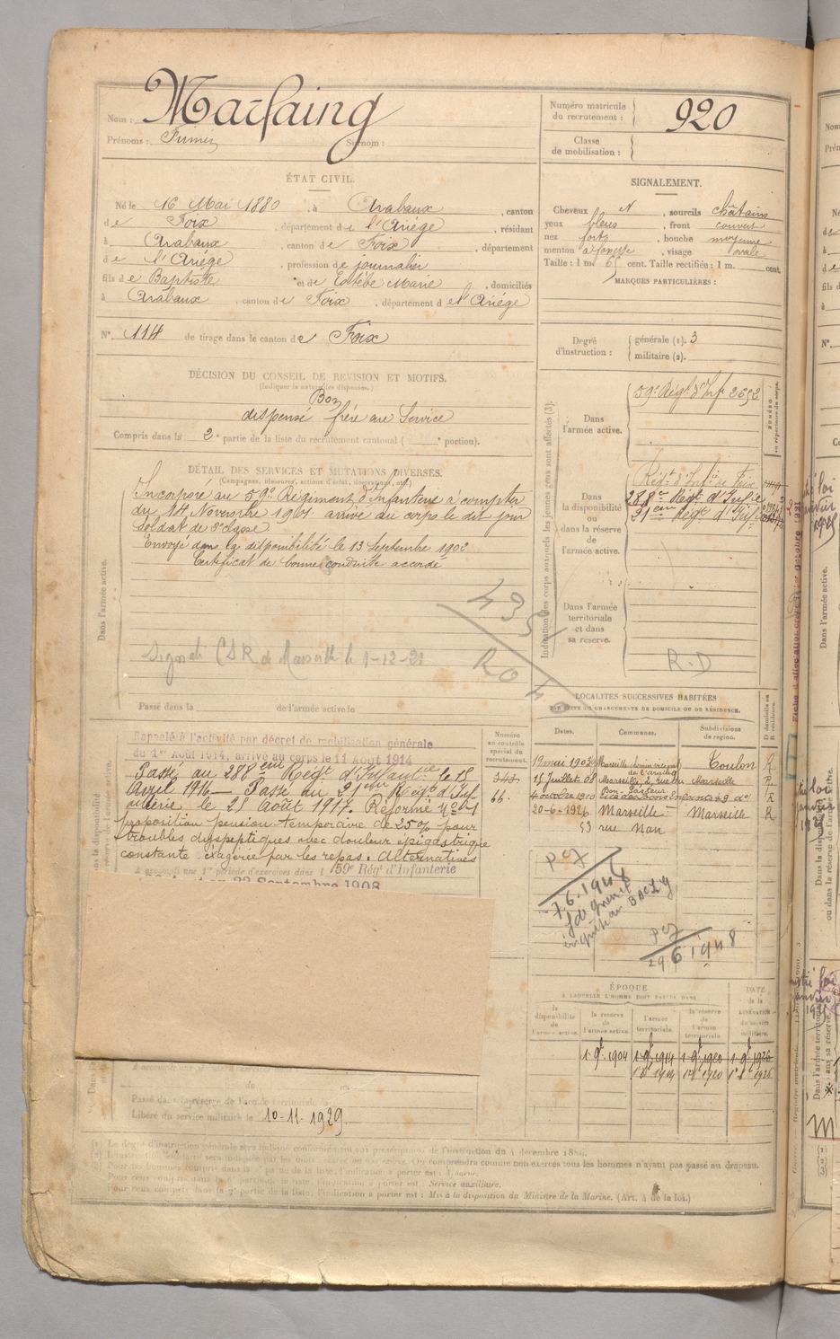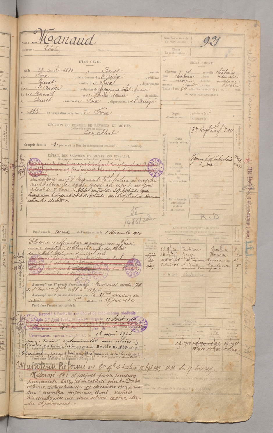 | Manaud | Célestin | FOIX | 129 W 3 | 1900 | Burret | Burret | 921 |