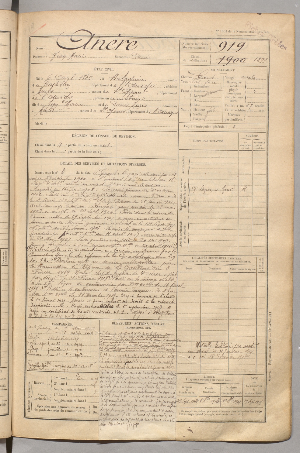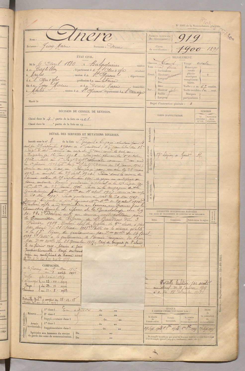 | Anère | Jean Mare dit Prués | FOIX | 129 W 5 | 1900 | Balaguères | Moulis | 919 |
