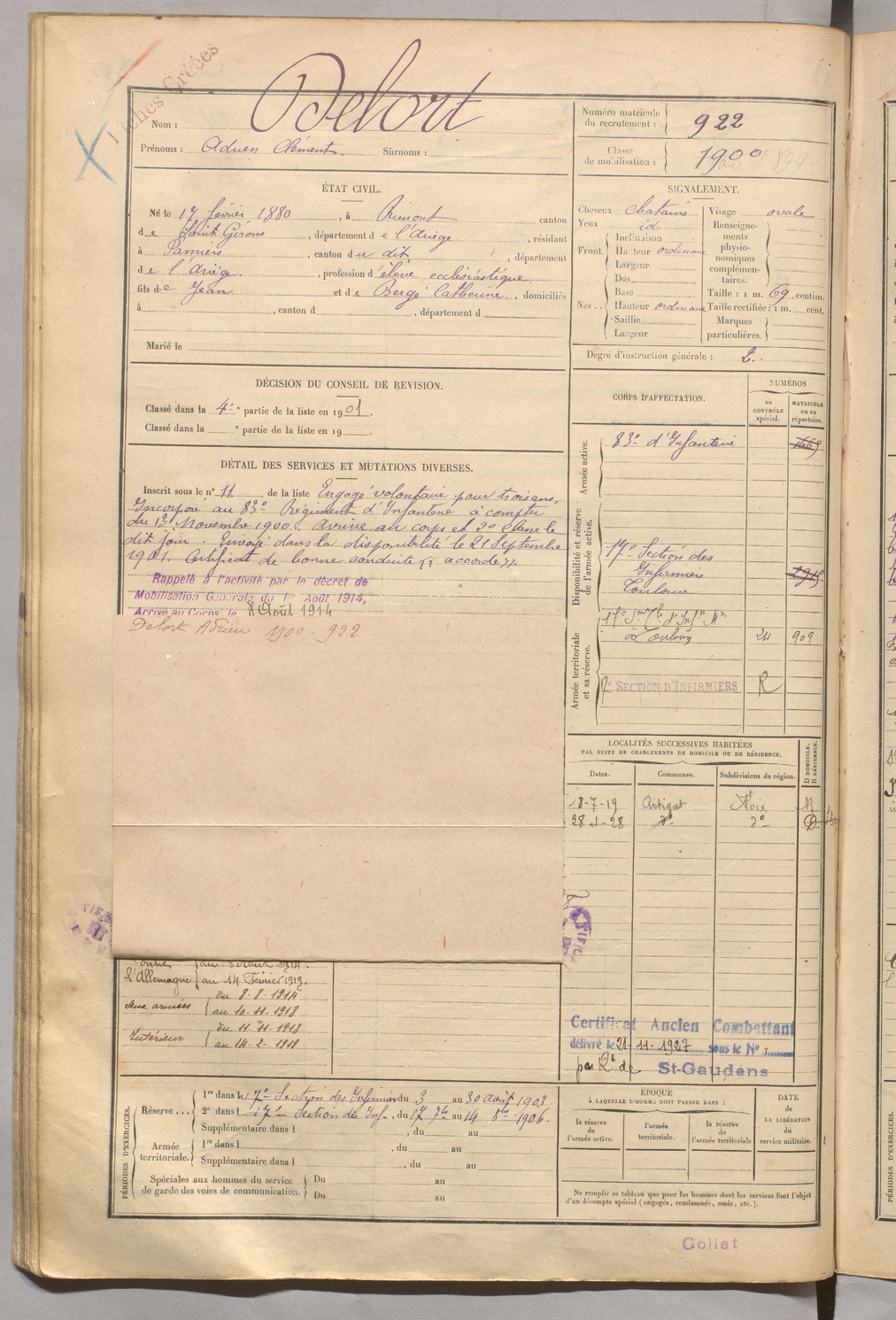 | Delort | Adrien Clément | FOIX | 129 W 5 | 1900 | Rimont | Pamiers | 922 |