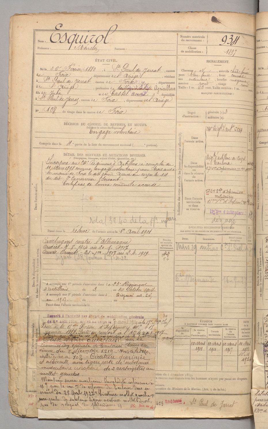 | Joulieu | Paul | FOIX | 129 W 3 | 1900 | Montgailhard | Montgailhard | 936 |