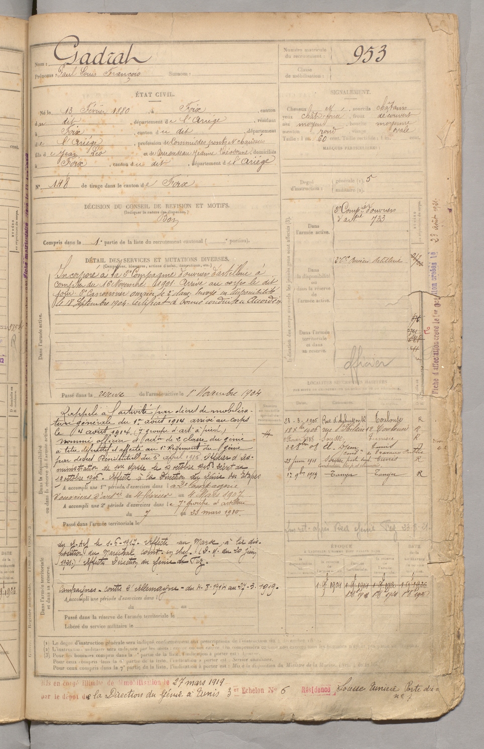 | Gadrat | Paul Louis François | FOIX | 129 W 3 | 1900 | Foix | Foix | 953 |