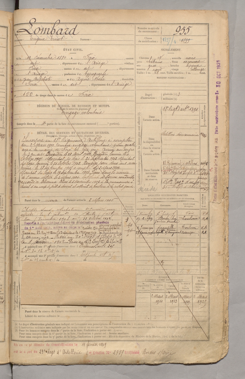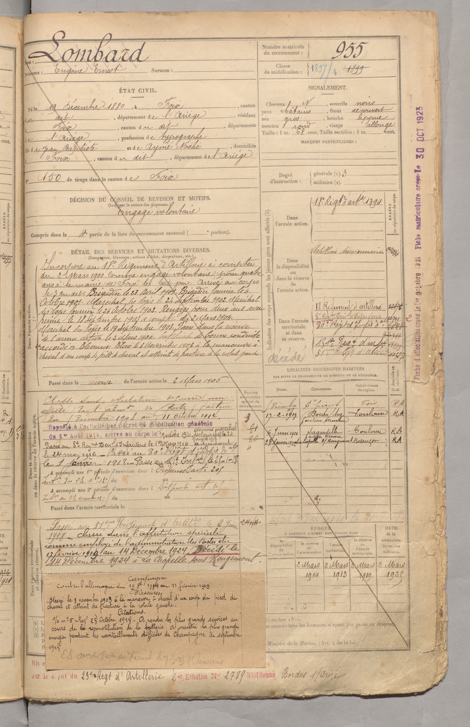 | Lombard | Eugène Ernest | FOIX | 129 W 3 | 1900 | Foix | Foix | 955 |