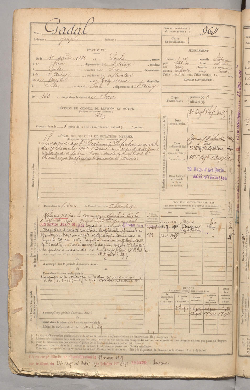 | Gadal | Joseph | FOIX | 129 W 3 | 1900 | Soula | Soula | 964 |