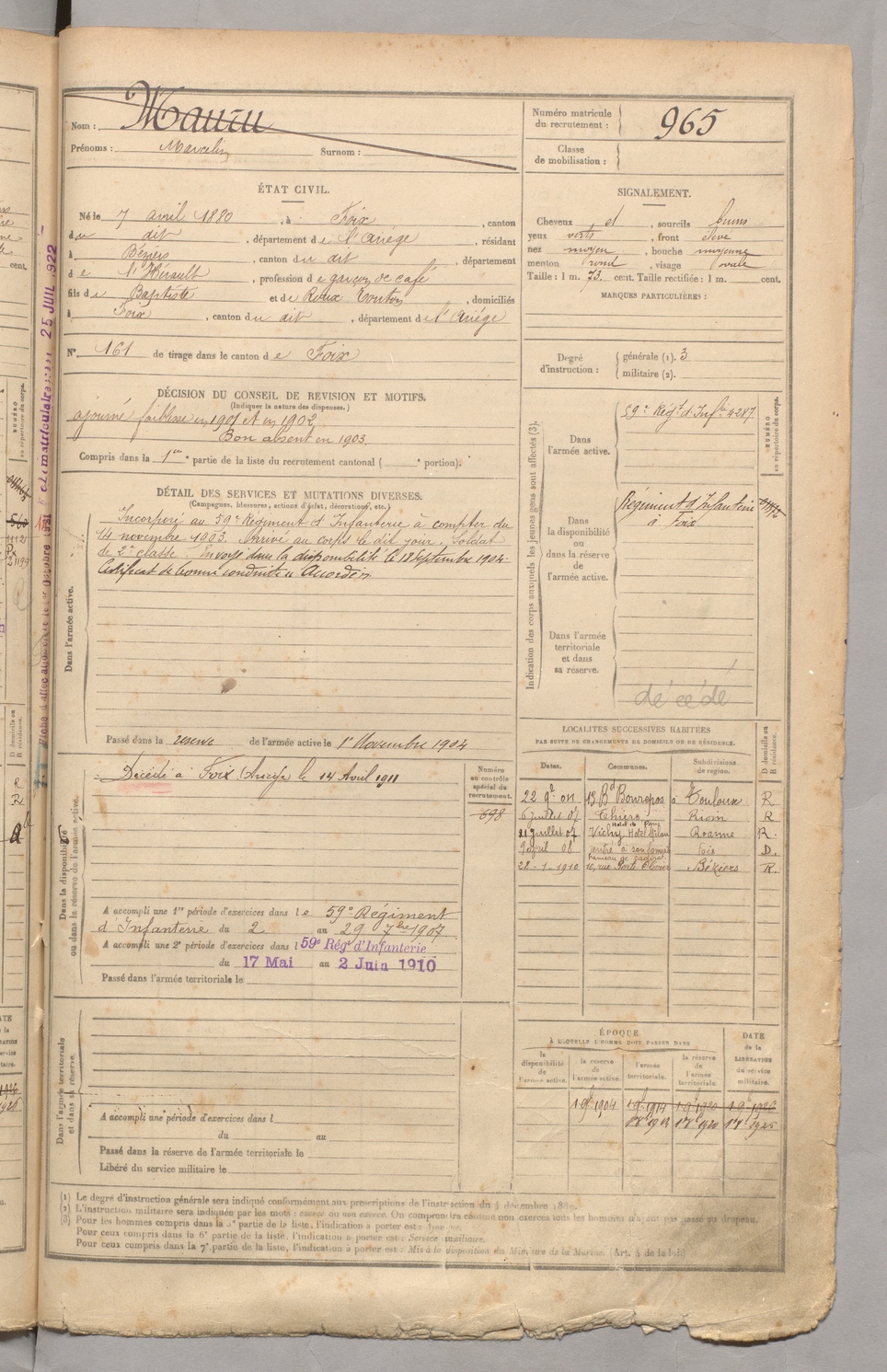 | Mauru | Marcelin | FOIX | 129 W 3 | 1900 | Foix | Béziers | 965 |