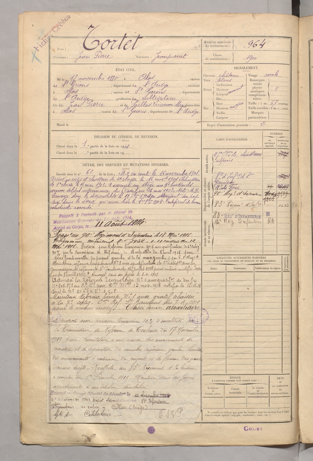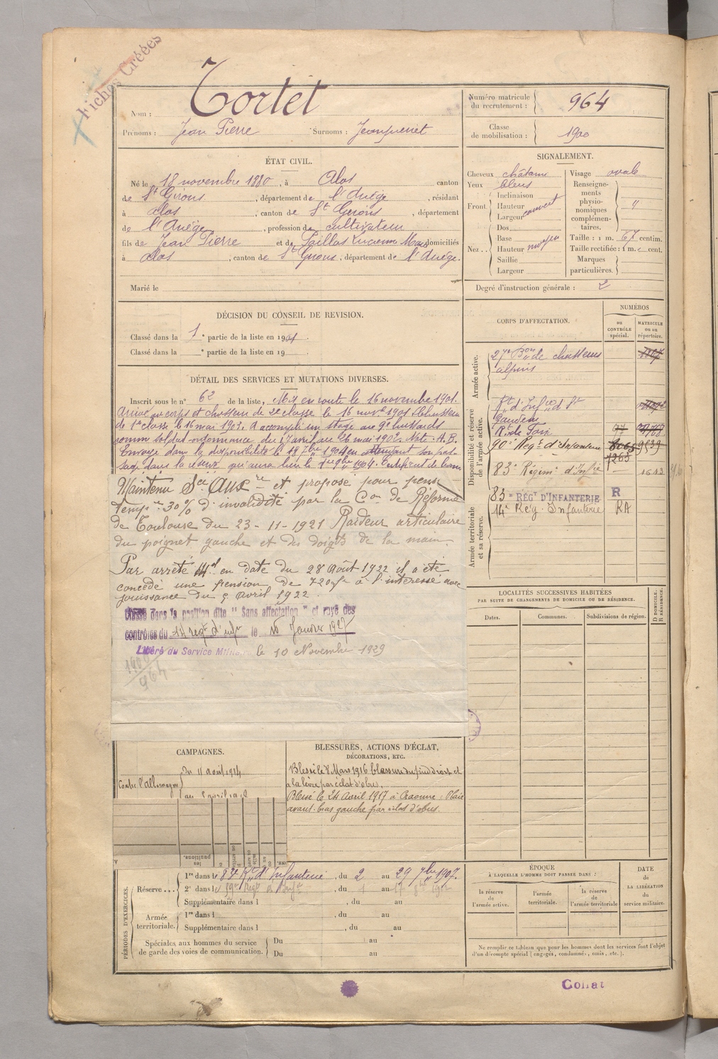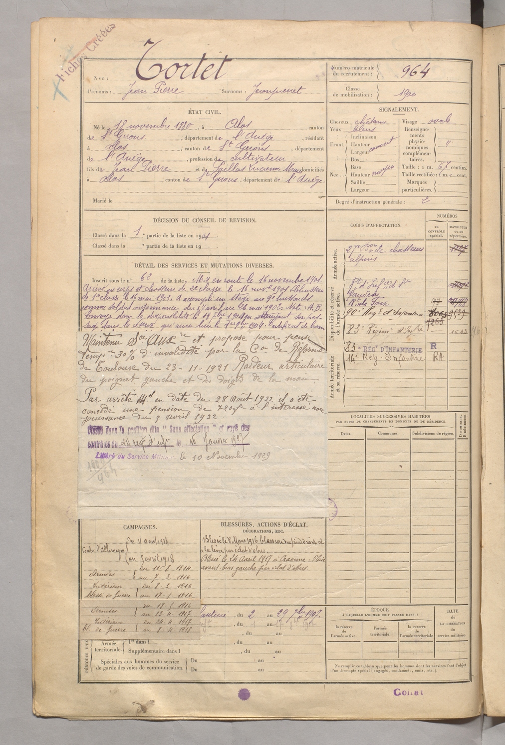 | Tortet | Jean Pierre dit Jeanpieriet | FOIX | 129 W 5 | 1900 | Alos | Alos | 964 |