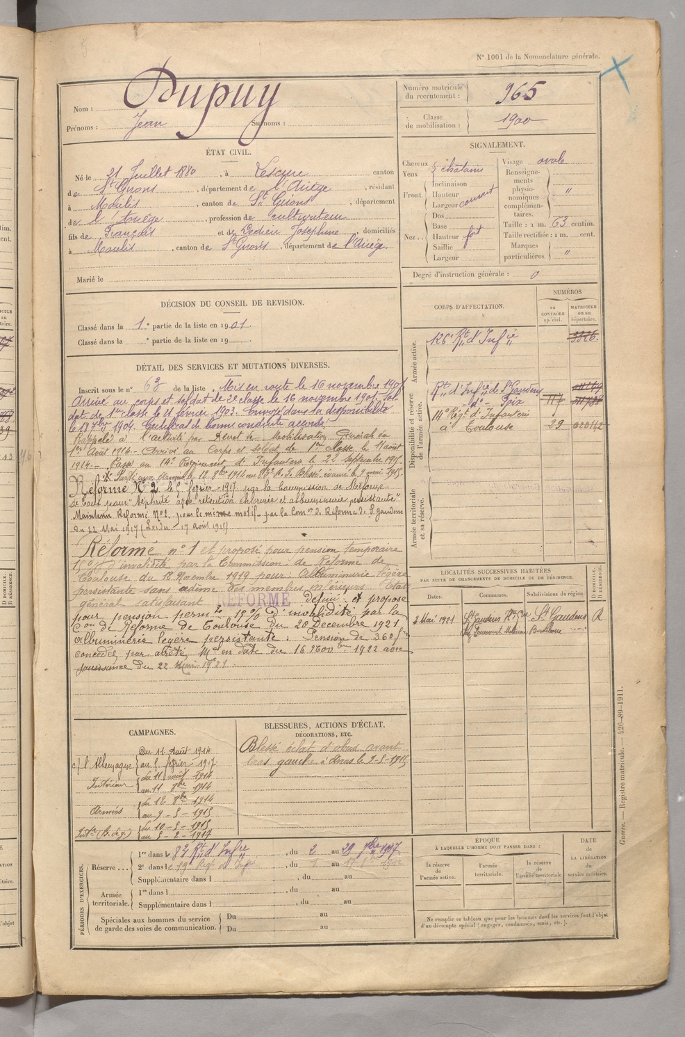 | Dupuy | Jean | FOIX | 129 W 5 | 1900 | Lescure | Moulis | 965 |