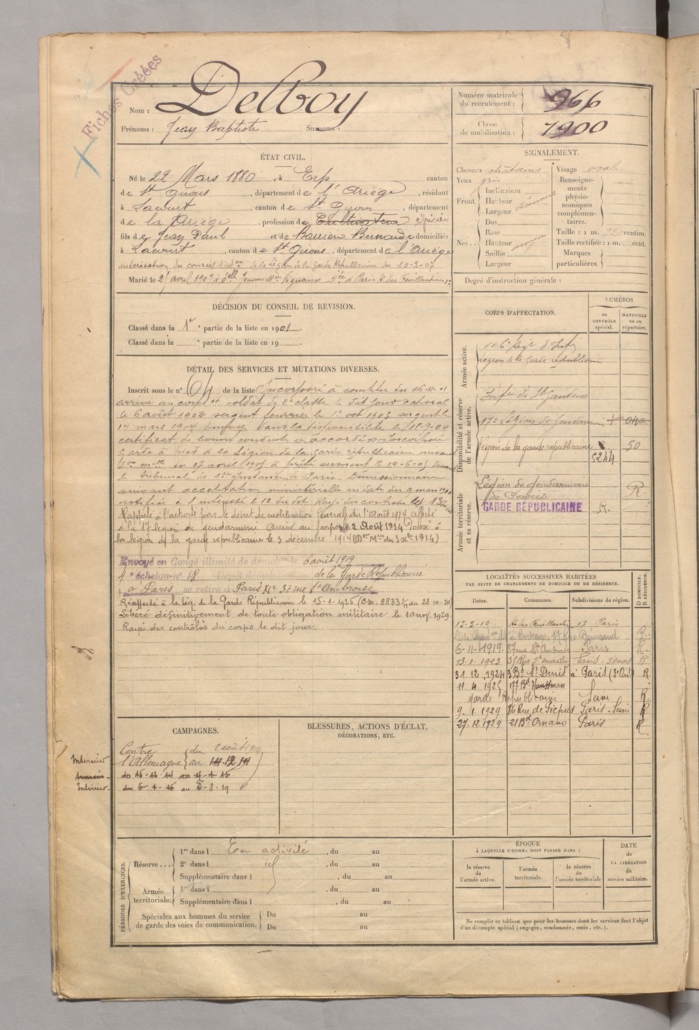 | Delboy | Jean Baptiste | FOIX | 129 W 5 | 1900 | Erp | Lacourt | 966 |