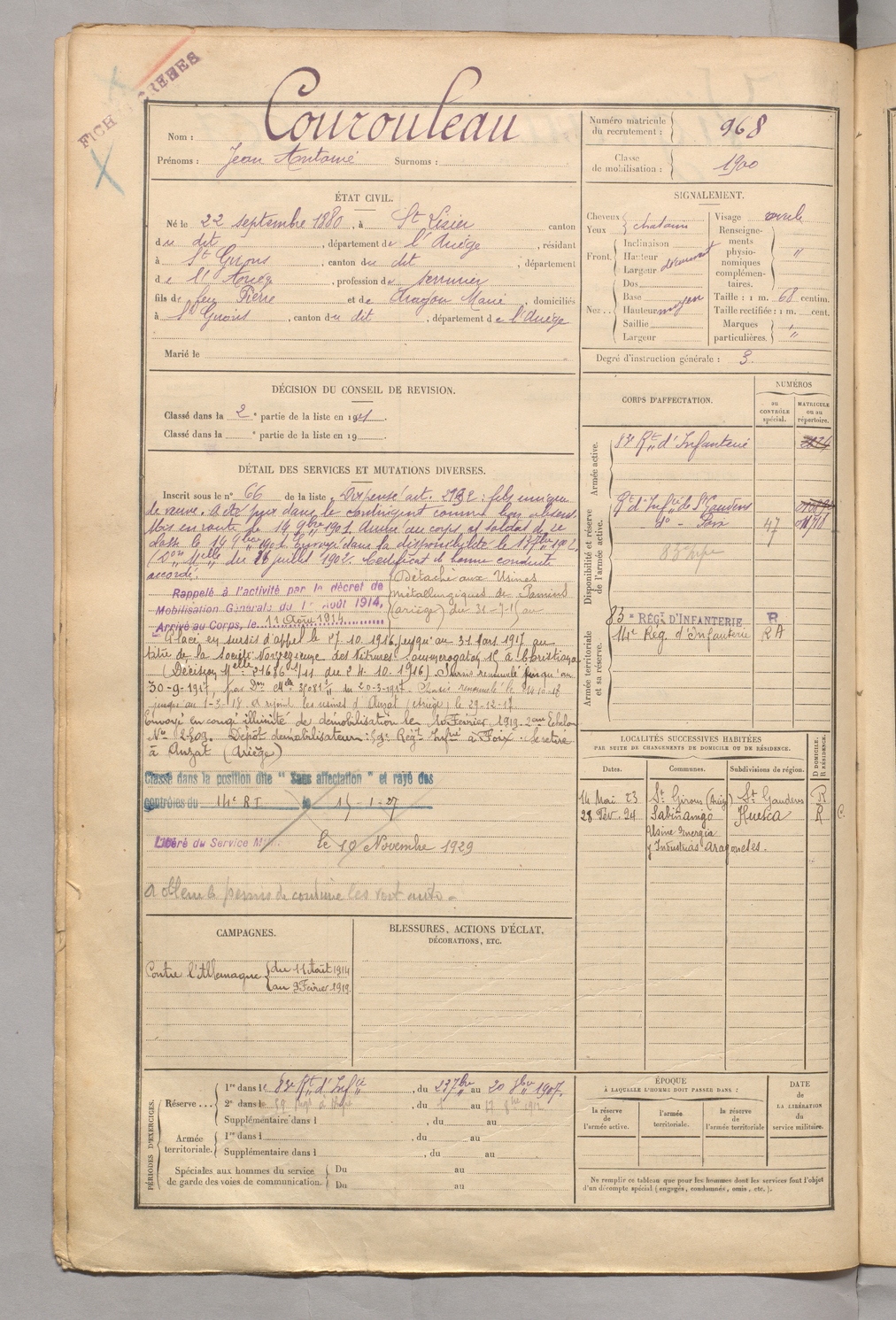| Courouleau | Jean Antoine | FOIX | 129 W 5 | 1900 | Saint-Lizier | Saint-Girons | 968 |